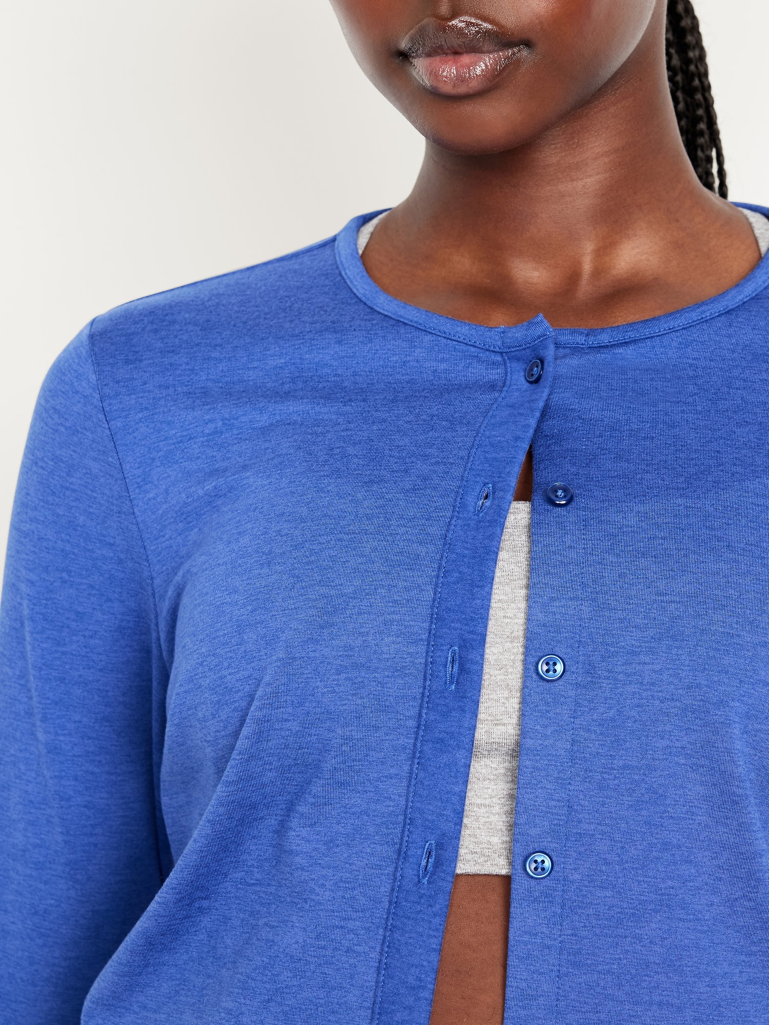 CloudComfy Cropped Cardigan: Lightly textured and soft as a literal cloud.crew neck, long sleeves, full-button front, breathable, #784761