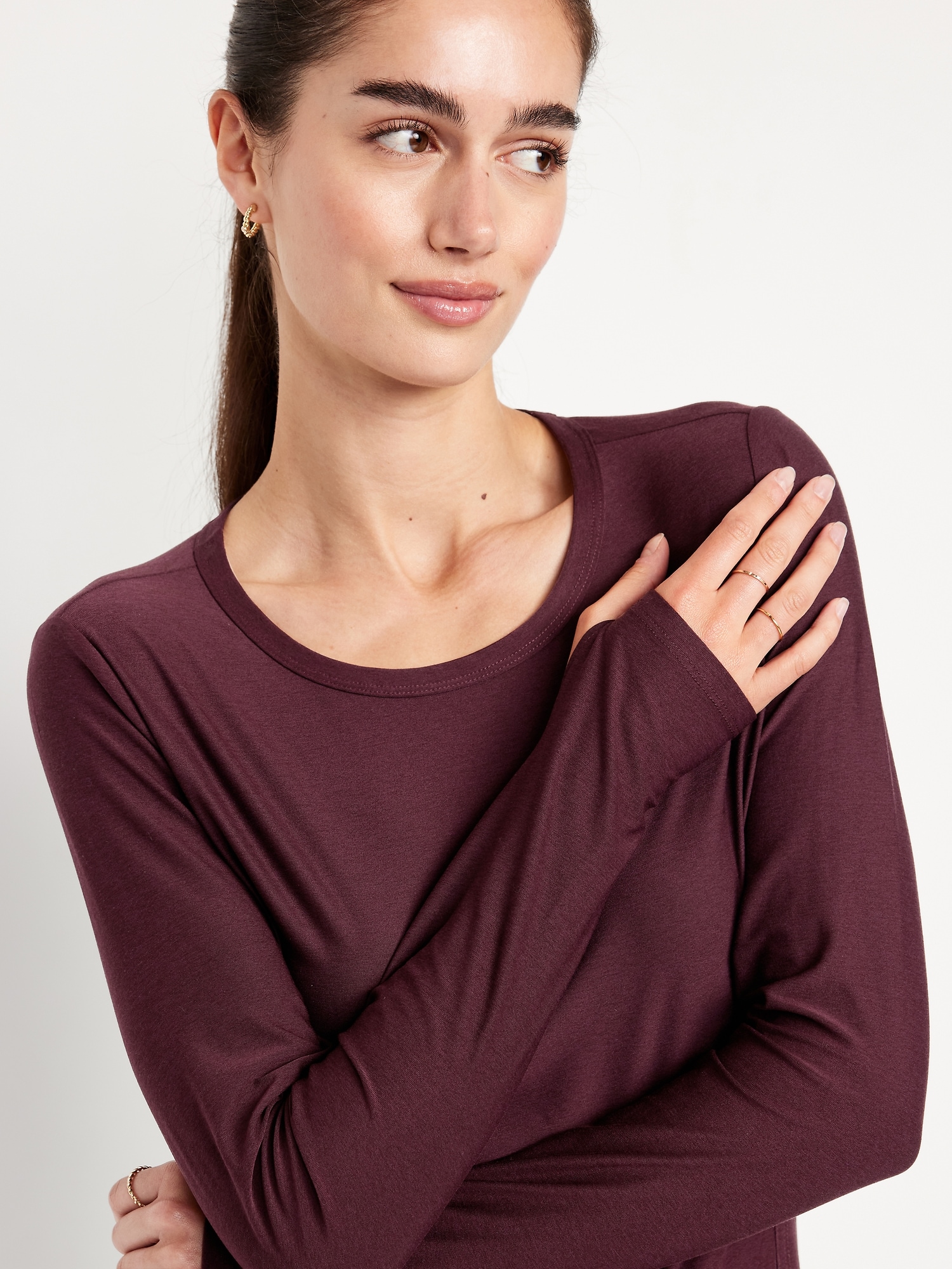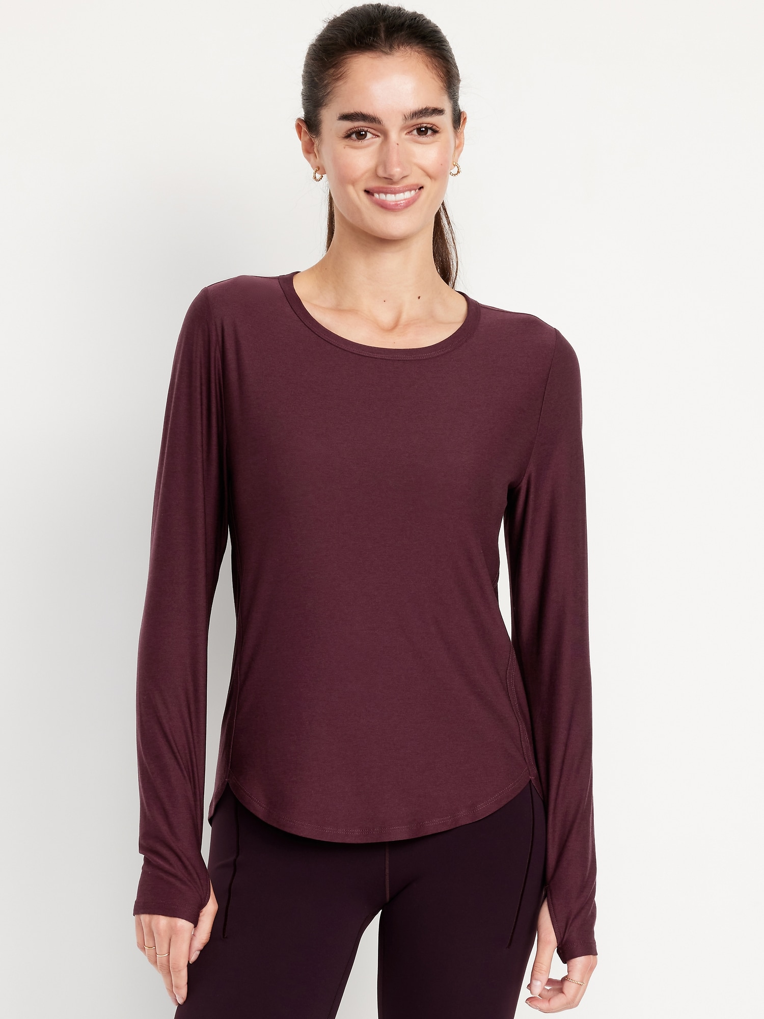 CloudMotion Base Layer Top: The new Cloud94 Soft. Versatile, sweat-wicking and soft as a literal cloud.crew neck, long sleeves, thumbhole cuffs, go-dry wicks moisture, #569721