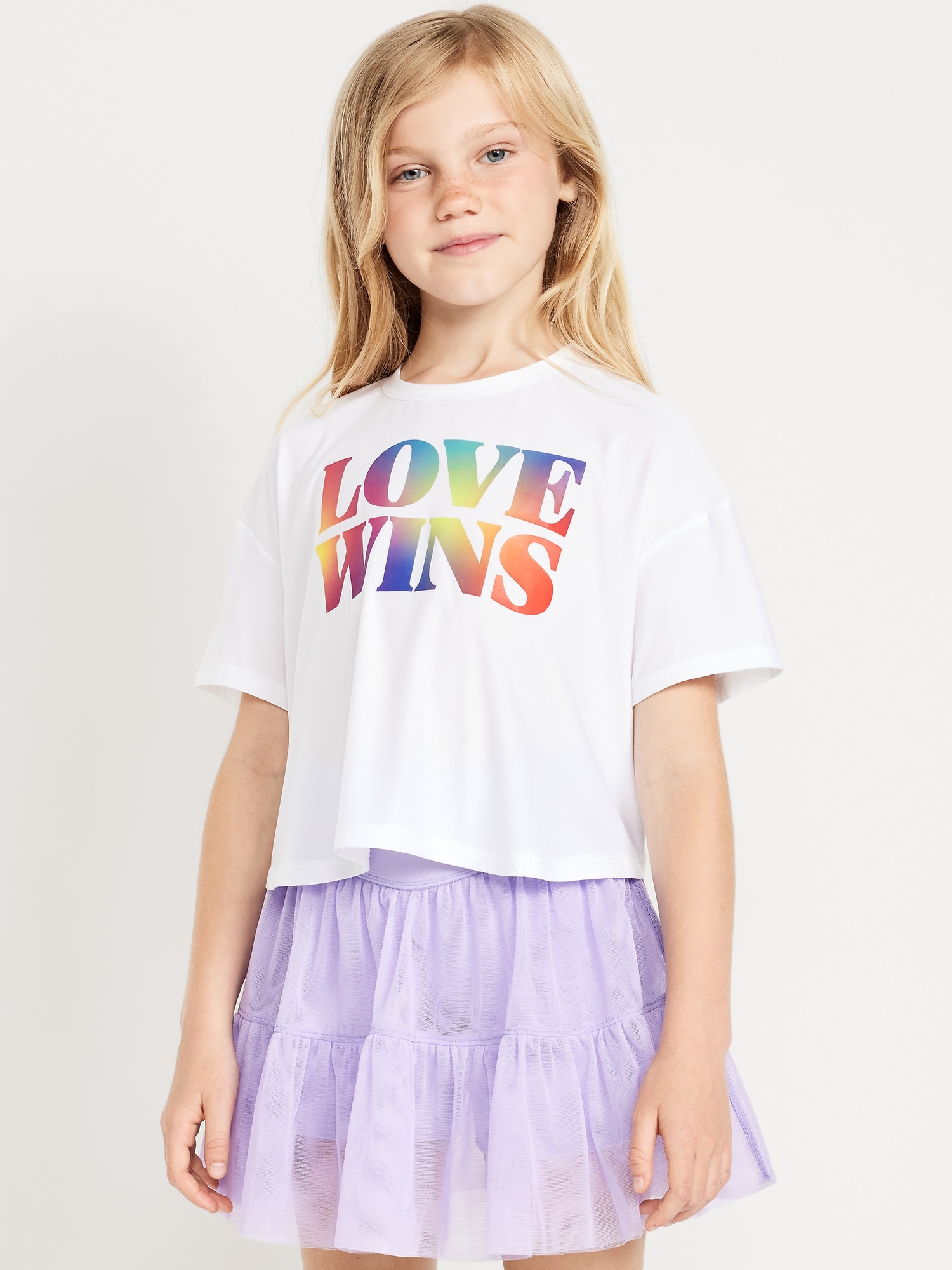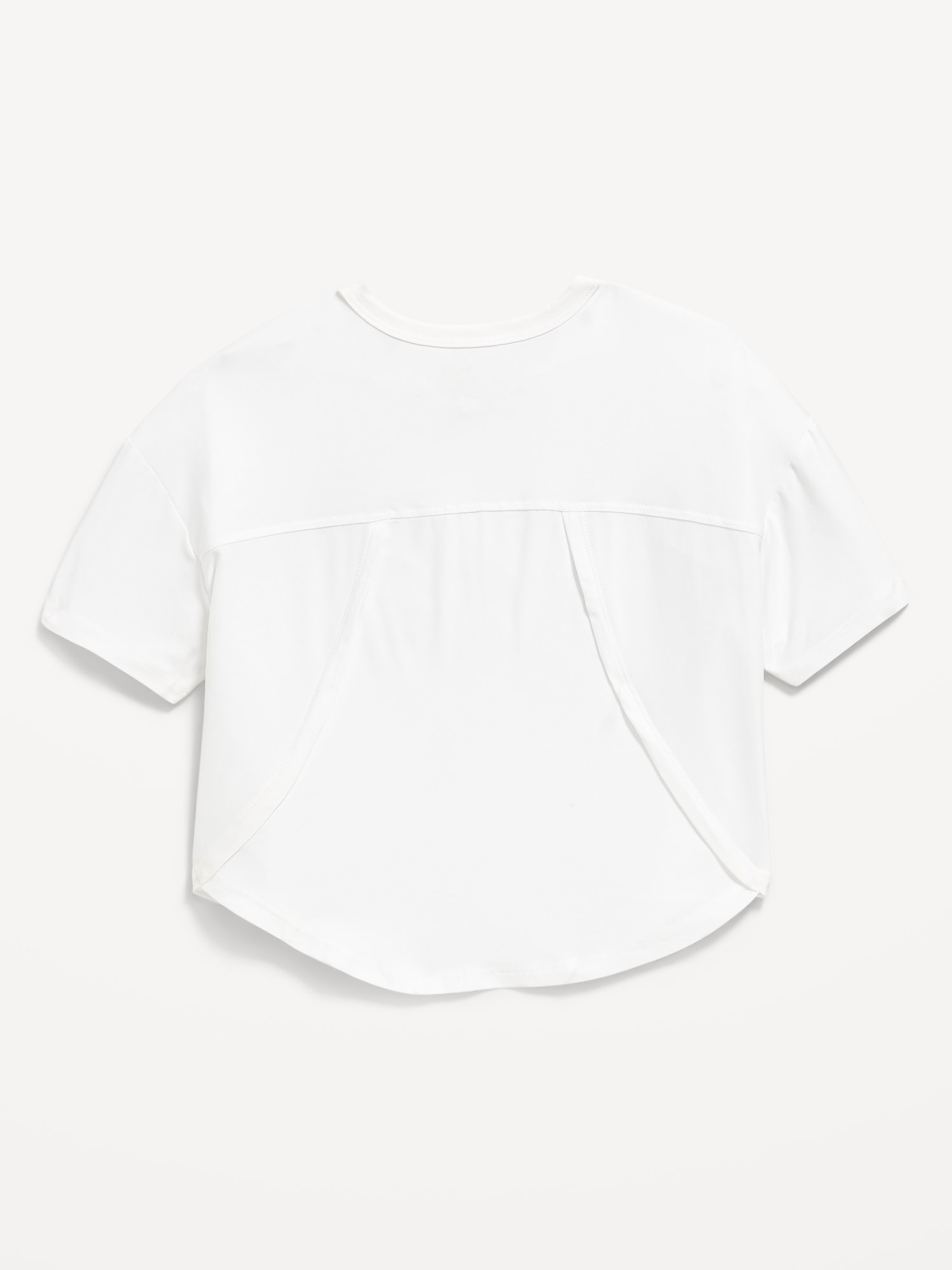 CloudMotion Cropped Performance T-Shirt for Girls: crew neck, short sleeves, drop shoulders, tulip hem, slightly cropped, #694626