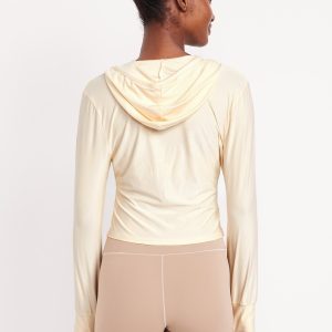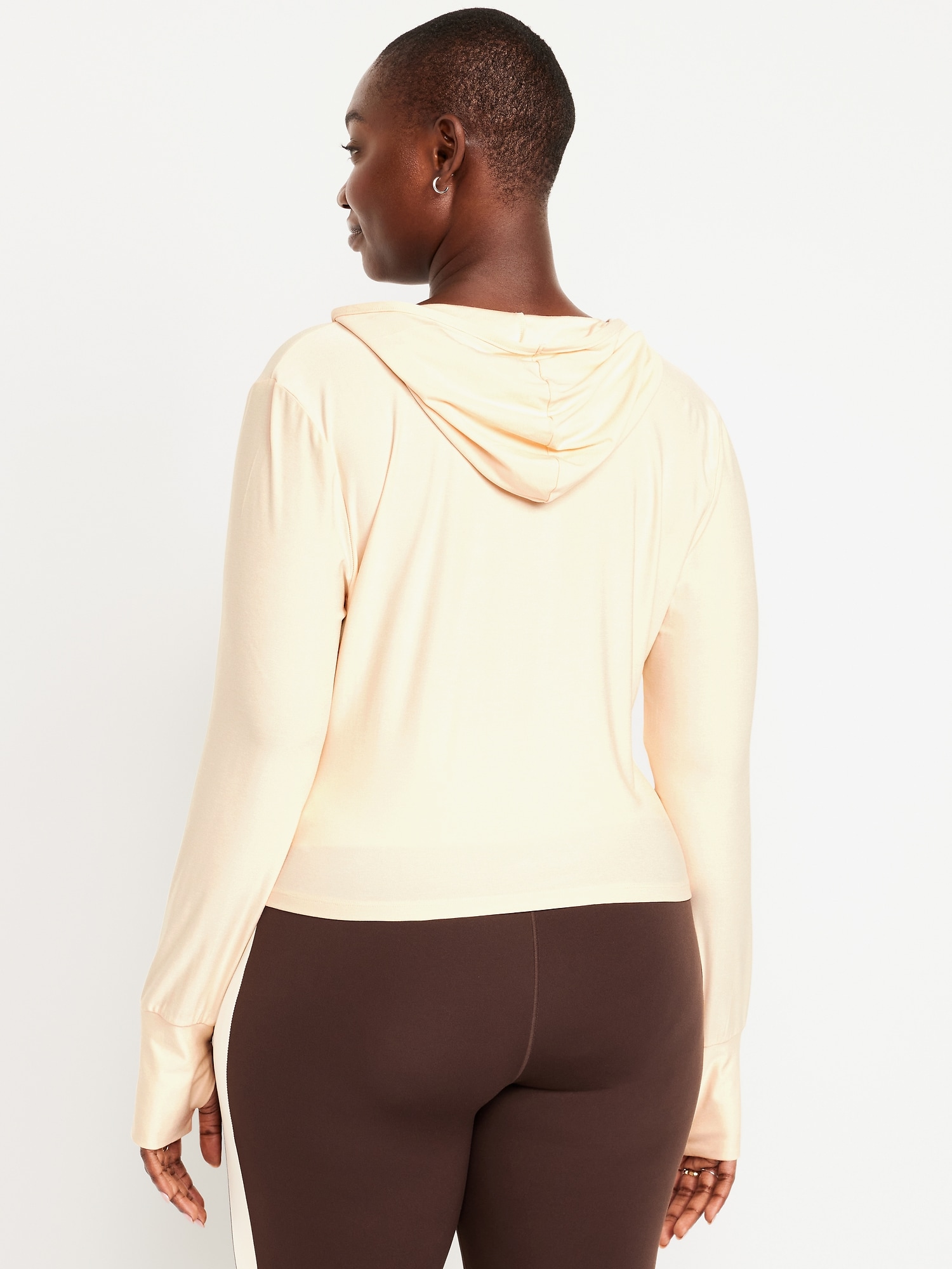 CloudMotion Cross-Front Hoodie: The new Cloud94 Soft. Versatile, sweat-wicking and soft as a literal cloud.built-in hood, cross front, long sleeves with thumbhole cuffs, go-dry wicks moisture, #784882