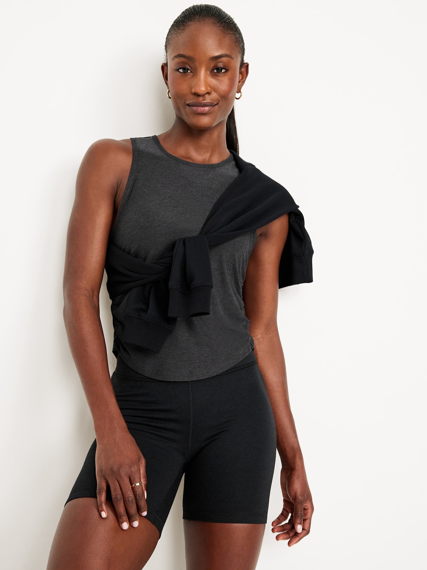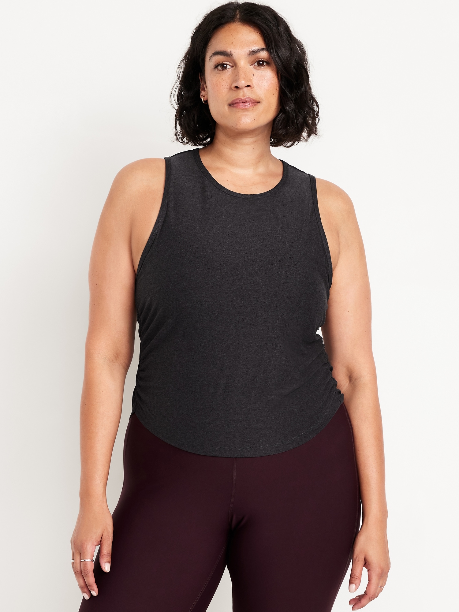 CloudMotion Ruched Tank Top: The new Cloud94 Soft. Versatile, sweat-wicking and soft as a literal cloud.crew neck, sleeveless, ruched sides, curved hem, go-dry wicks moisture, #663785