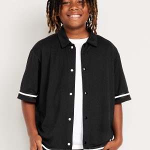 Collared Mesh Go-Dry Cool Performance Shirt for Boys: pointed collar, short sleeves, drop shoulders, full length snap-button front, #761899