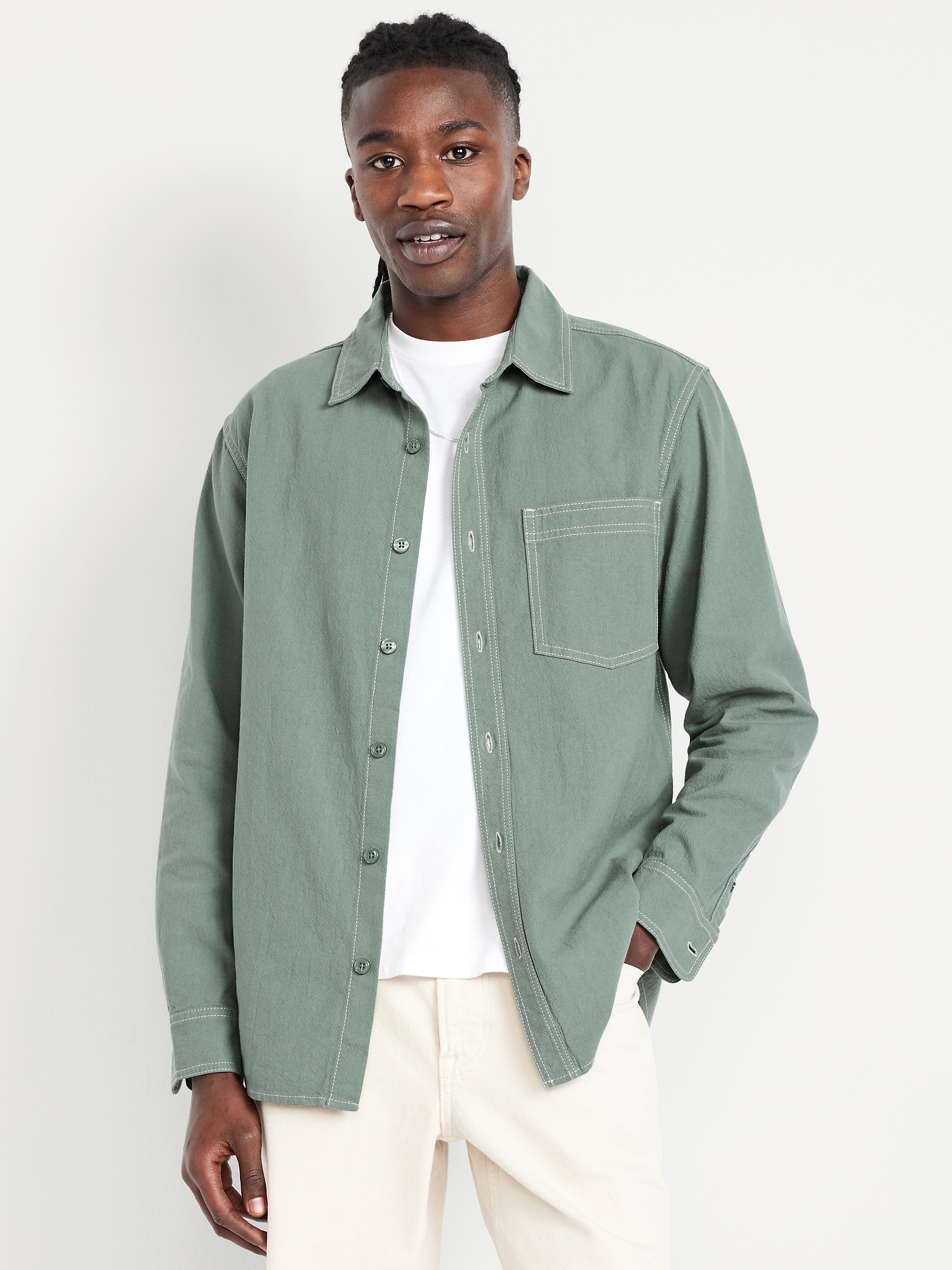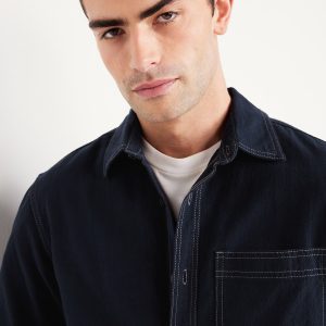 Contrast Stitch Workwear Shirt: spread collar, long sleeves, full-button front, patch chest pocket, contrast stitching, #762447