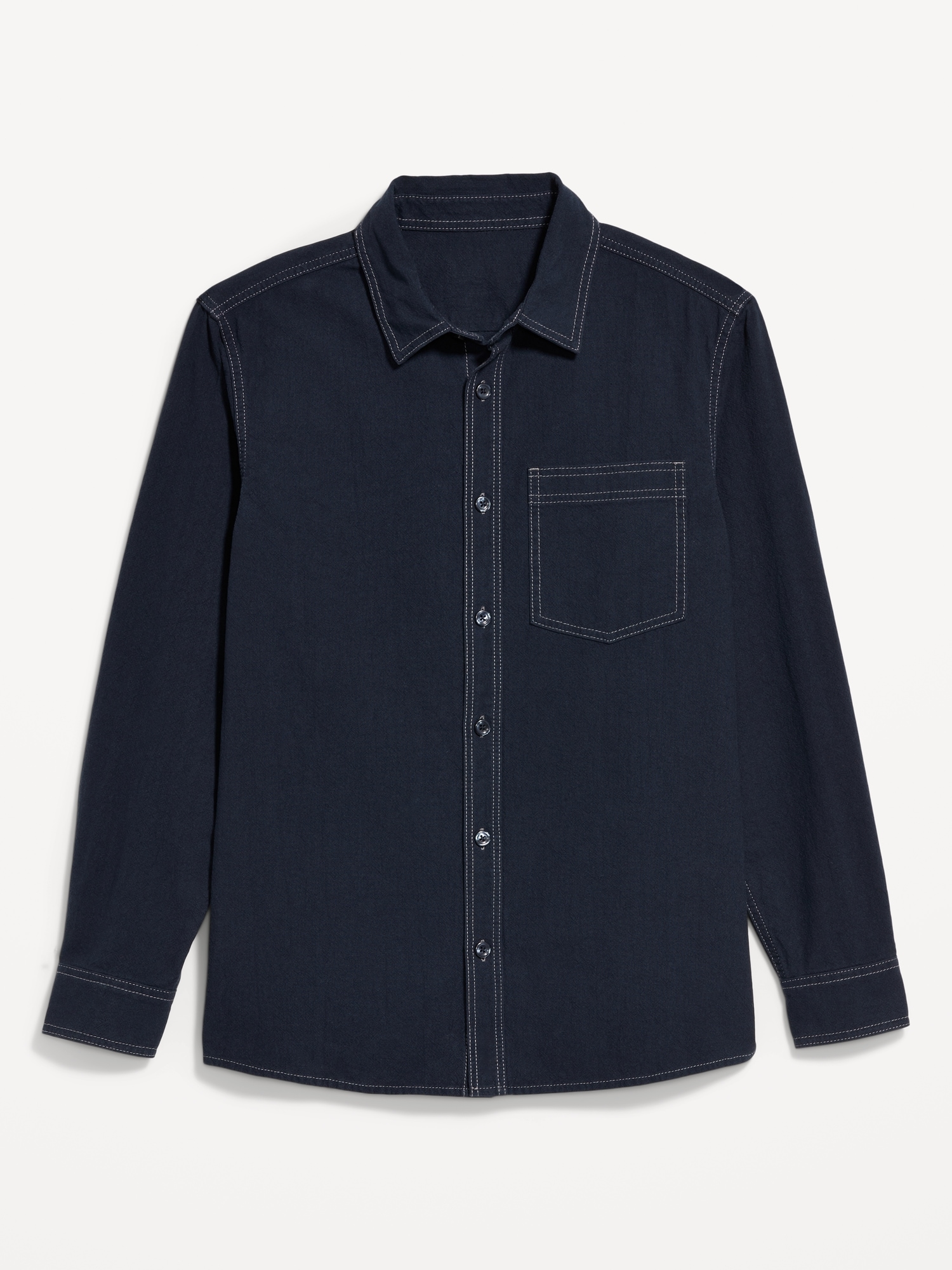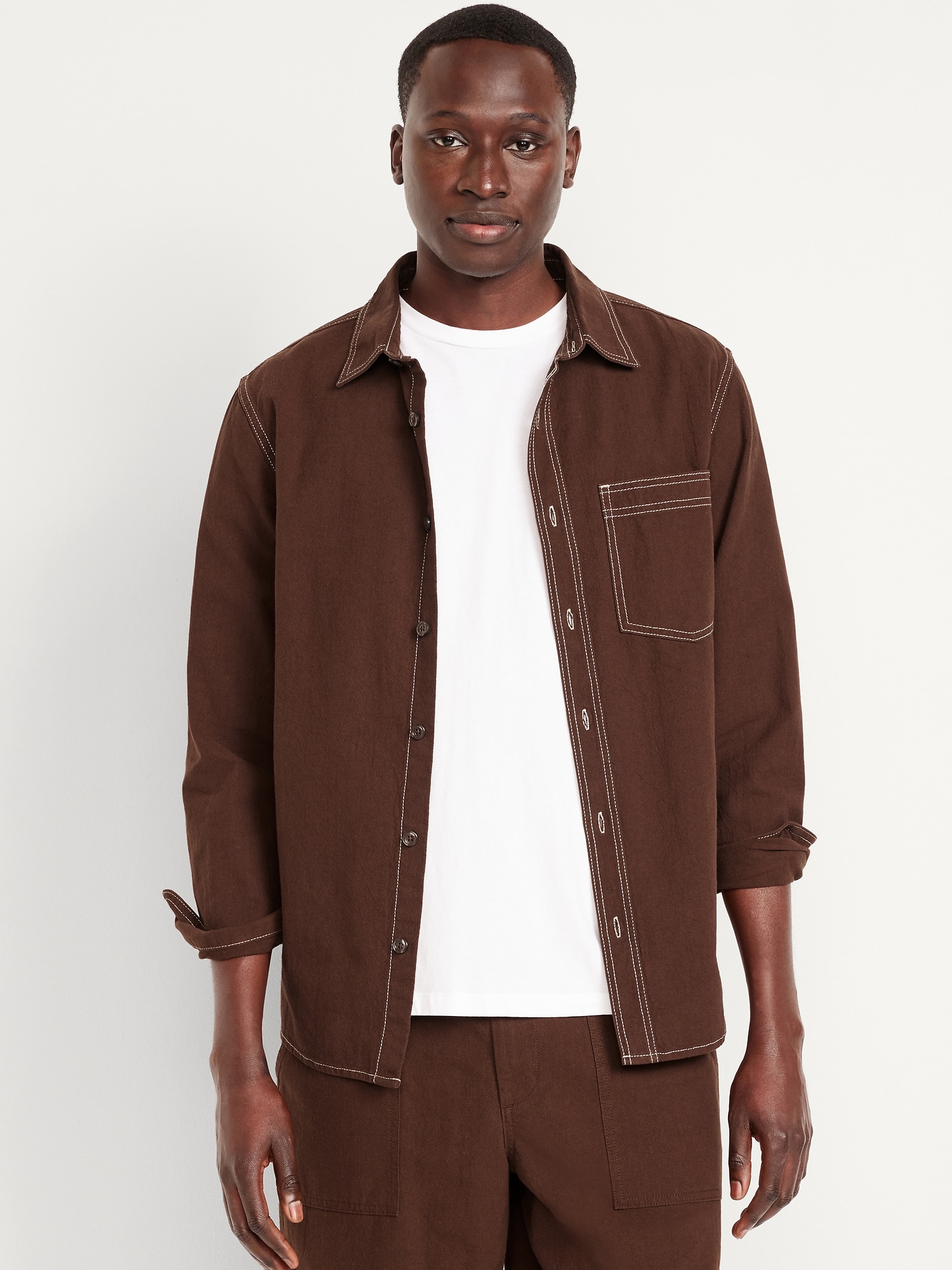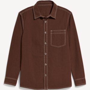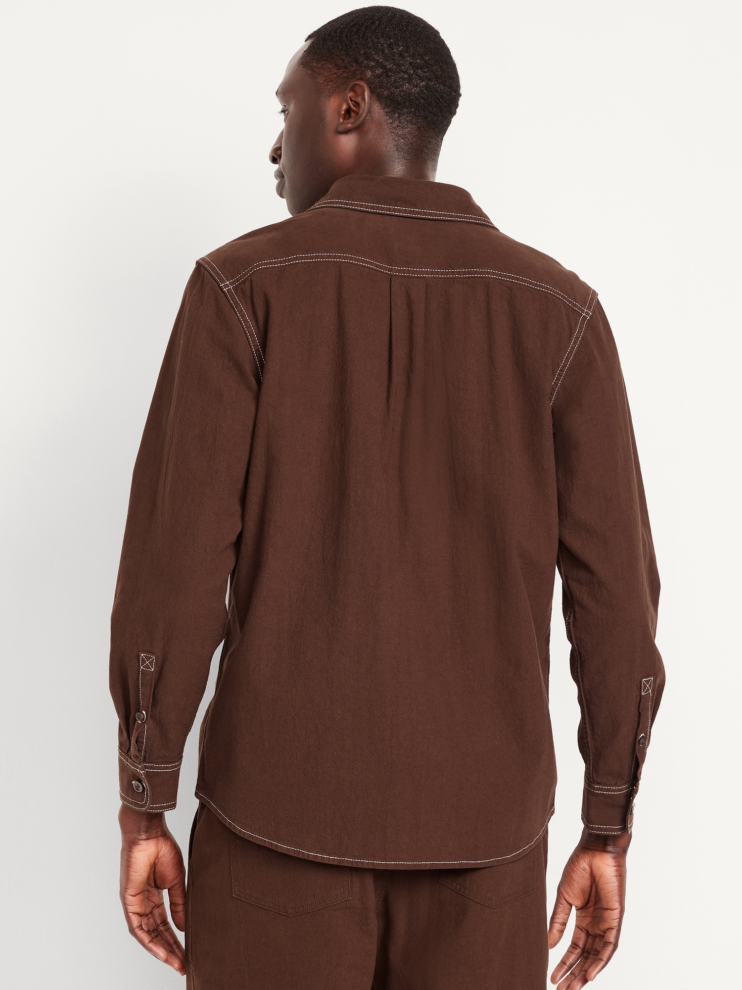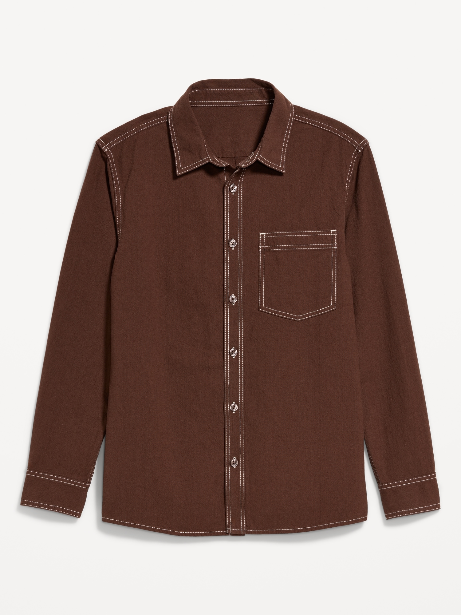 Contrast Stitch Workwear Shirt: spread collar, long sleeves, full-button front, patch chest pocket, contrast stitching, #762447