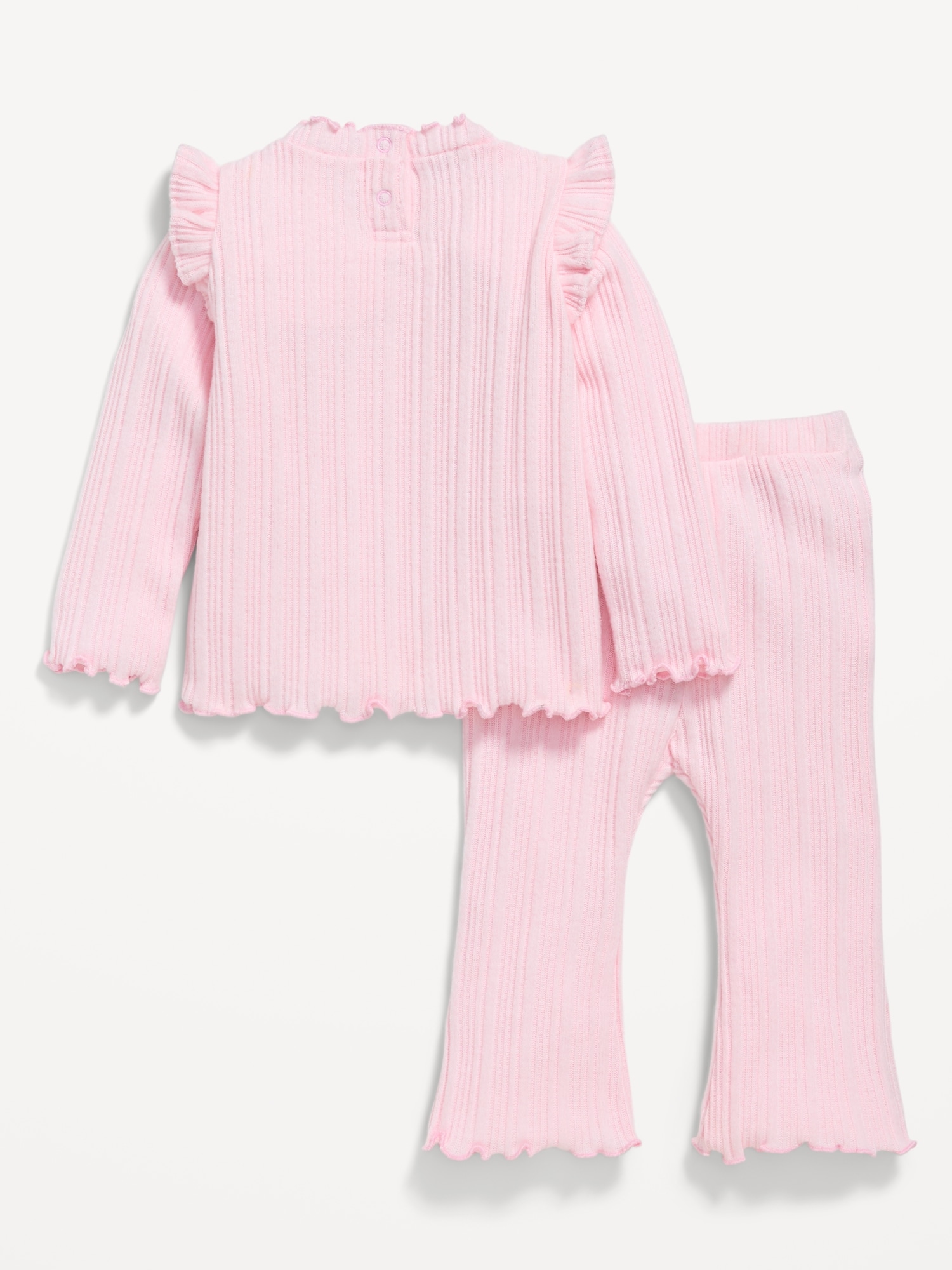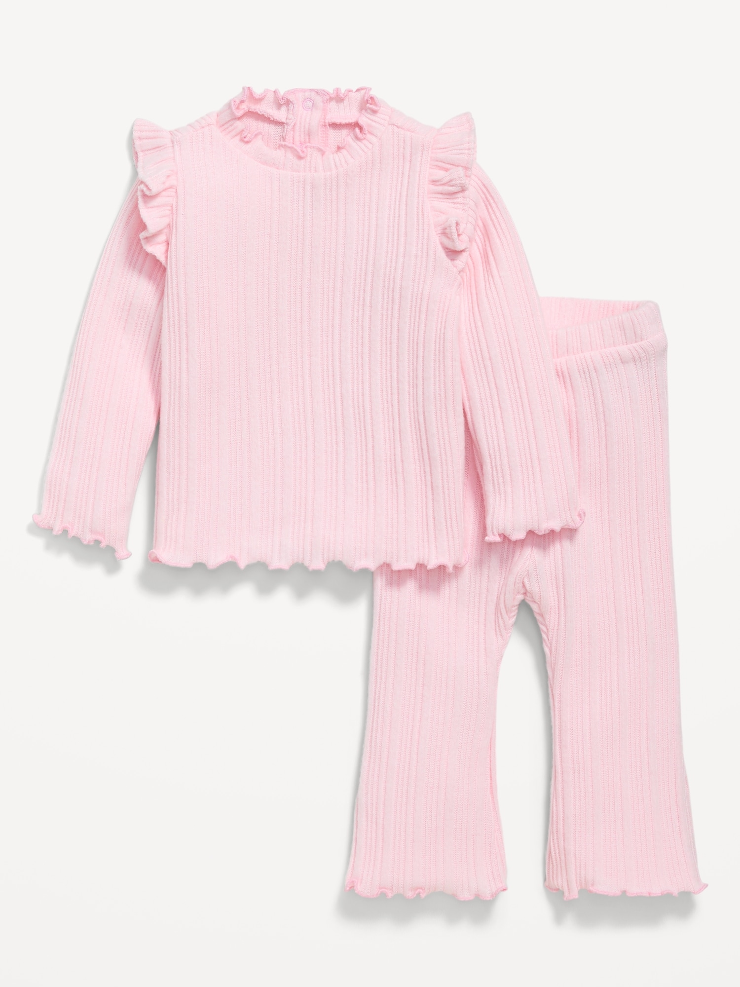 Cozy Long-Sleeve Ribbed Ruffle-Trim Top and Pants Set for Baby