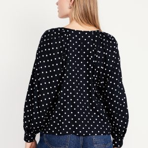 Crepe Button-Down Top: v-neck, raglan sleeves with buttoned cuffs, full-button front, prints vary, #805742