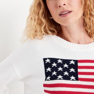 Crew-Neck Flag-Graphic Sweater: crew neck, long sleeves, front flag graphic, rib-knit trim, pullover style, #672986