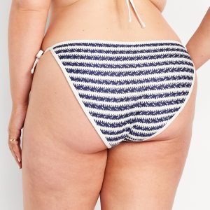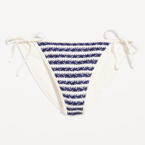 Crochet String Bikini Swim Bottoms: elastic waist and leg openings, side ties, crochet knit with lining, #747910