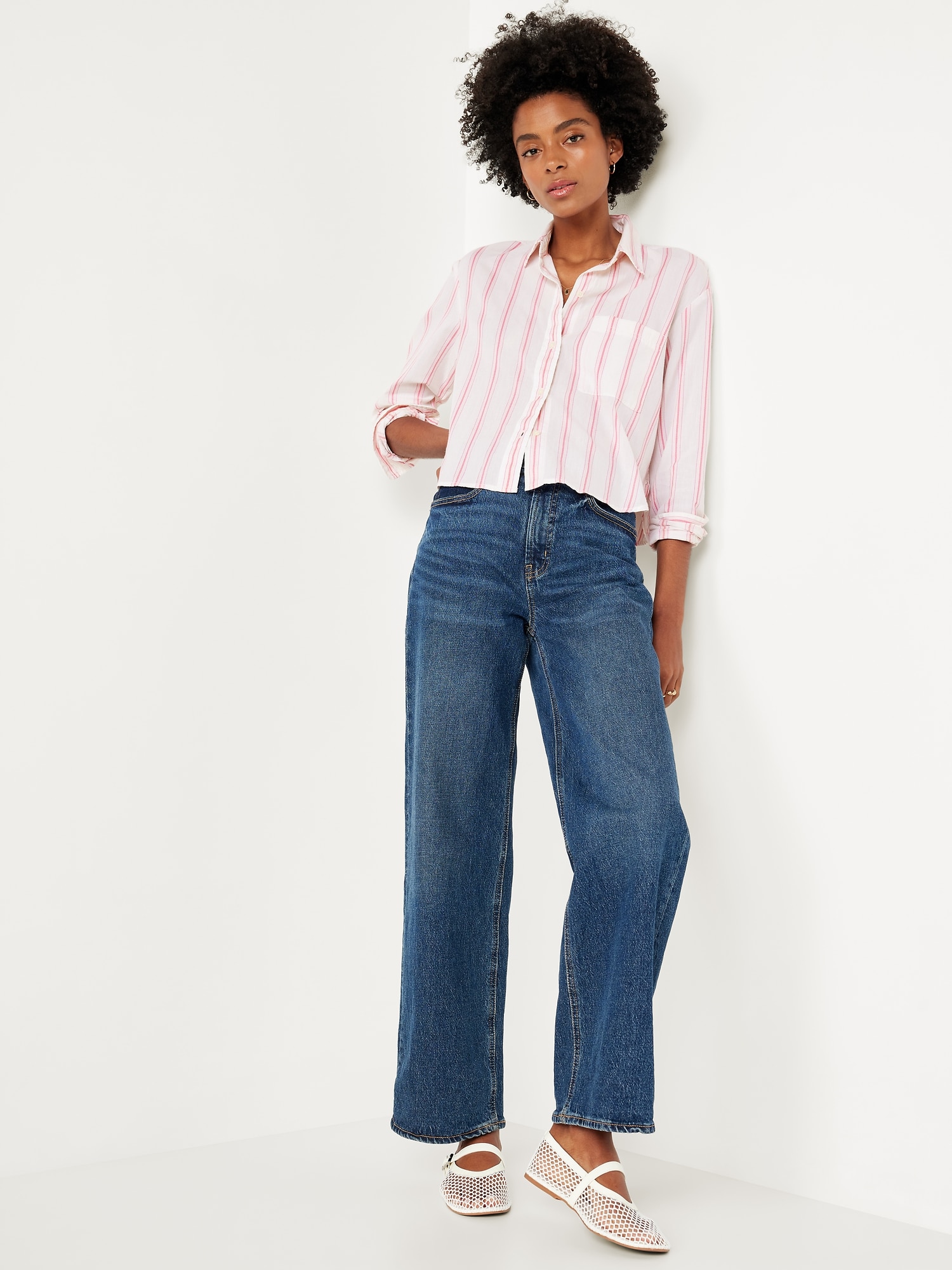Cropped Button-Down Striped Shirt