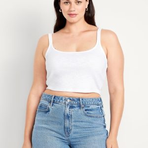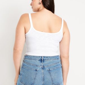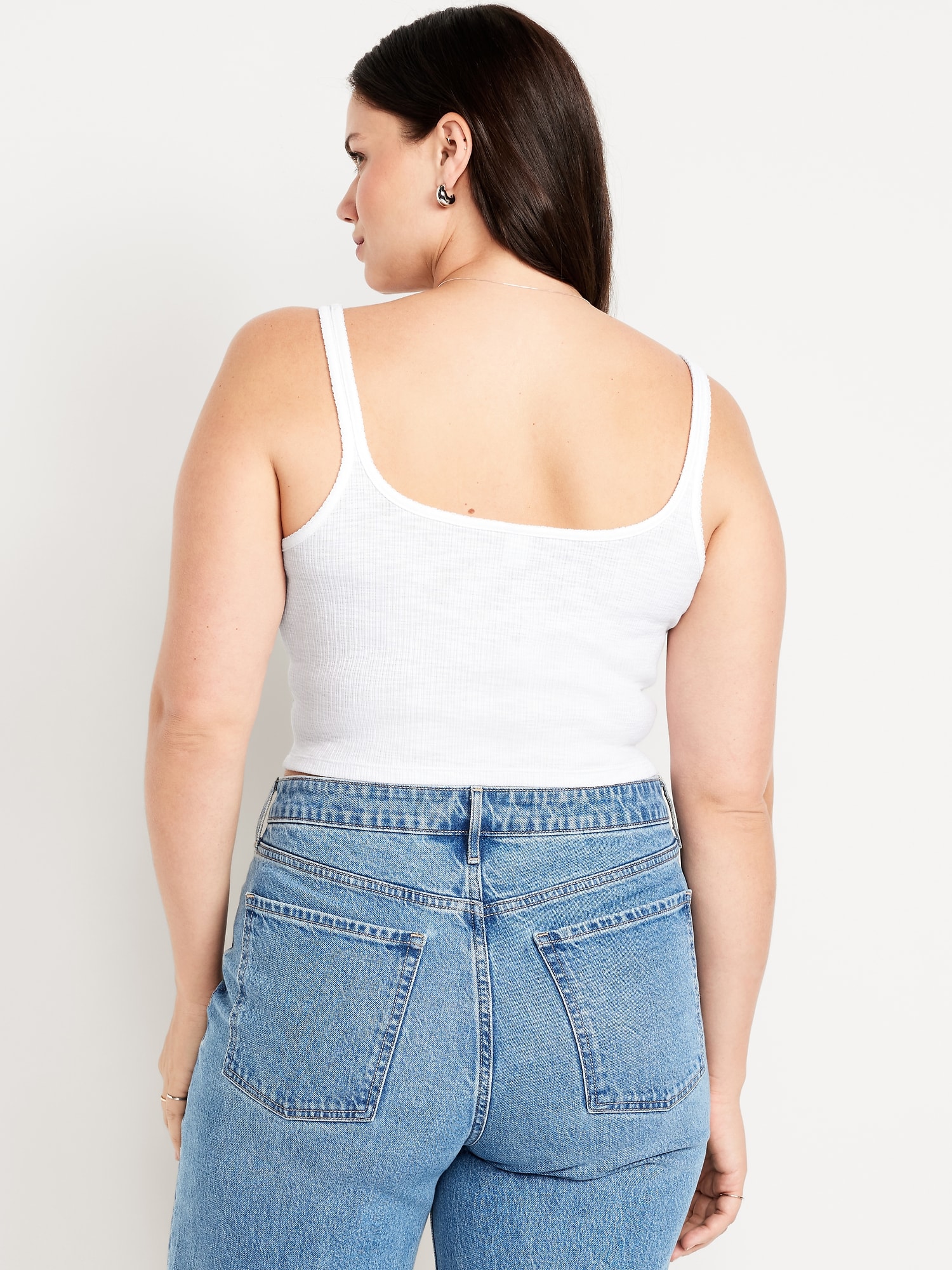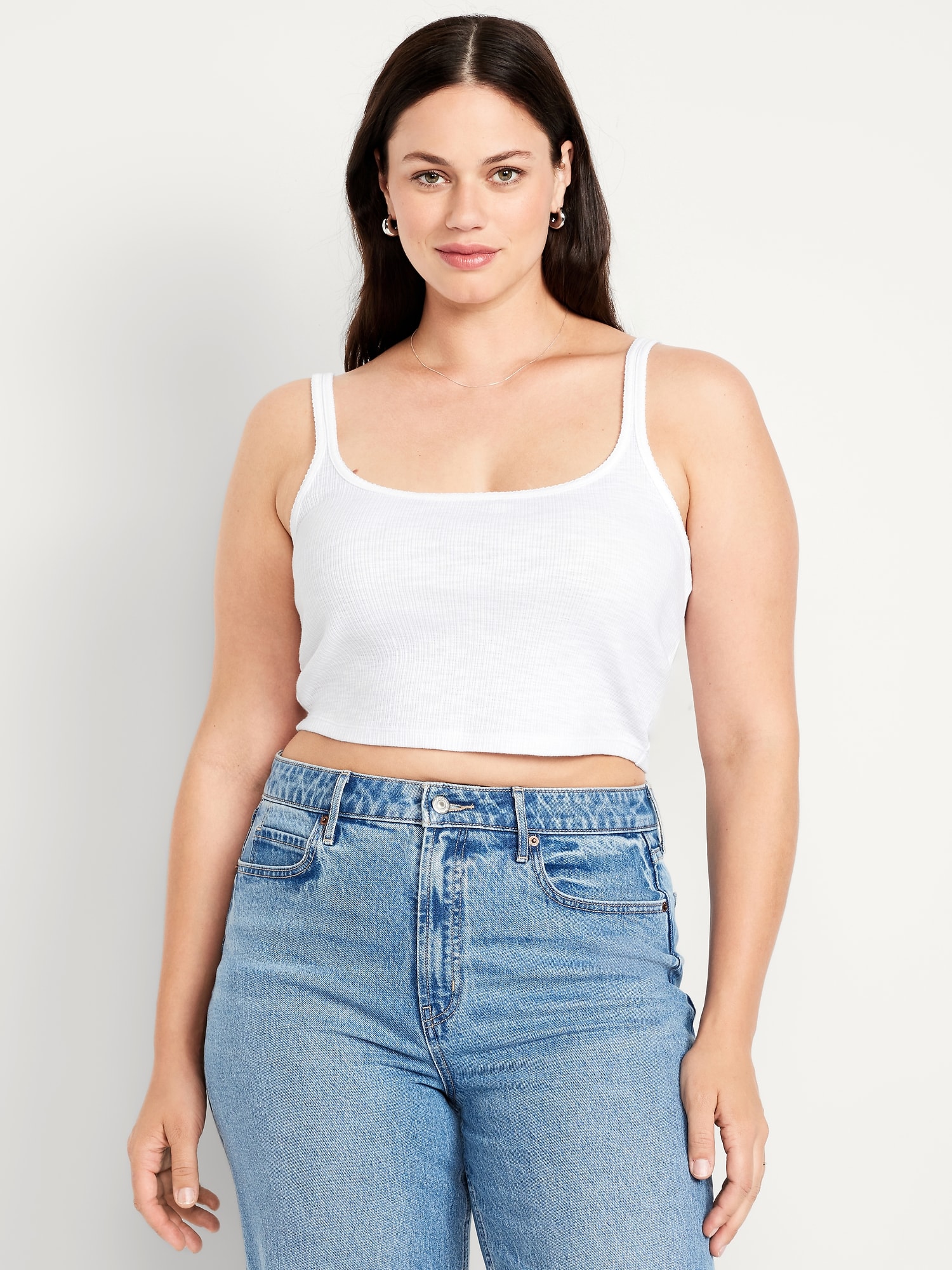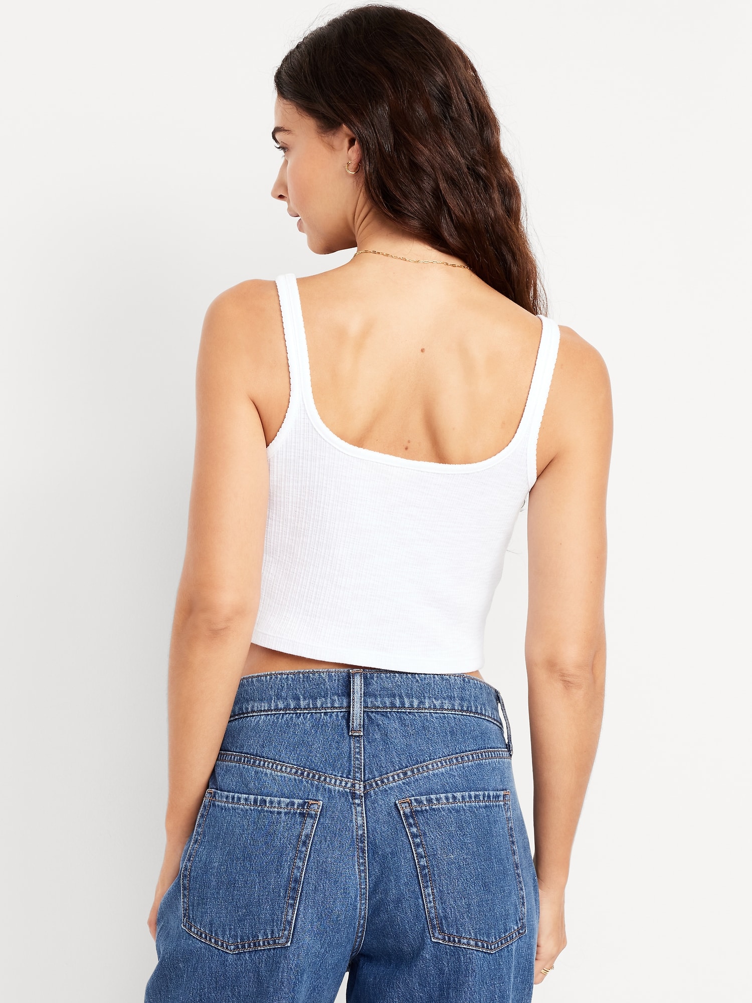 Cropped Pointelle Cami Top: scoop neck, spaghetti straps, #844566