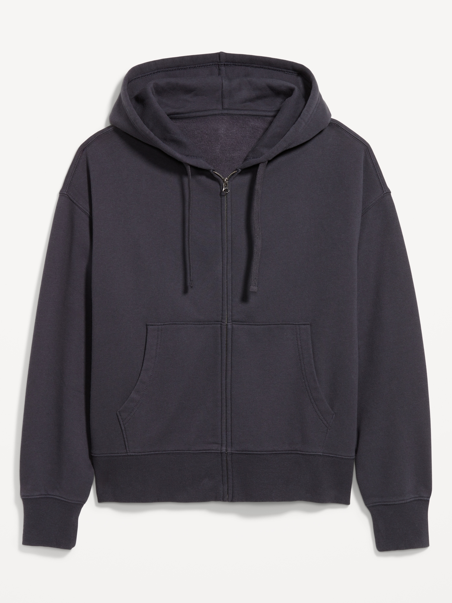 Cropped Rotation Oversized Zip Hoodie: drawstring hood, long drop-shoulder sleeves, full-zip front, hand-warming pockets, rib-knit trim, #828315