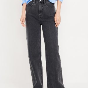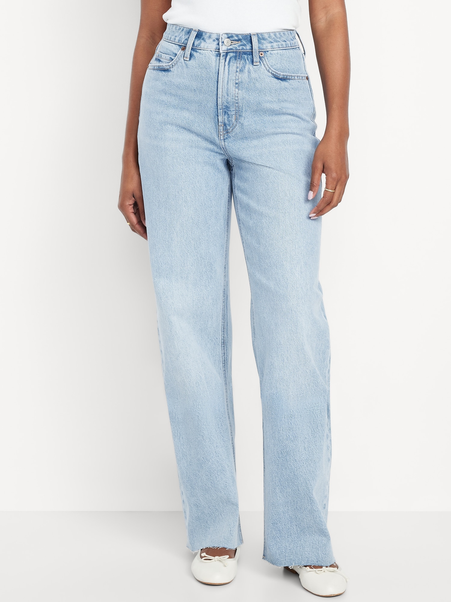Curvy Extra High-Waisted Cuffed Wide-Leg Jeans: A roomy wide leg with a smaller waist, fuller hips.no-gap extra high waist, zip fly, front scoop pockets, back patch pockets, ripped detail, #855940