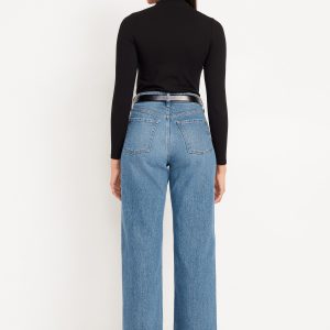 Curvy Extra High-Waisted Sky-Hi Wide-Leg Jeans: A roomy wide leg with a smaller waist, fuller hips.no-gap extra high waist, zip fly, front scoop pockets, back patch pockets, ripped detail, #855940