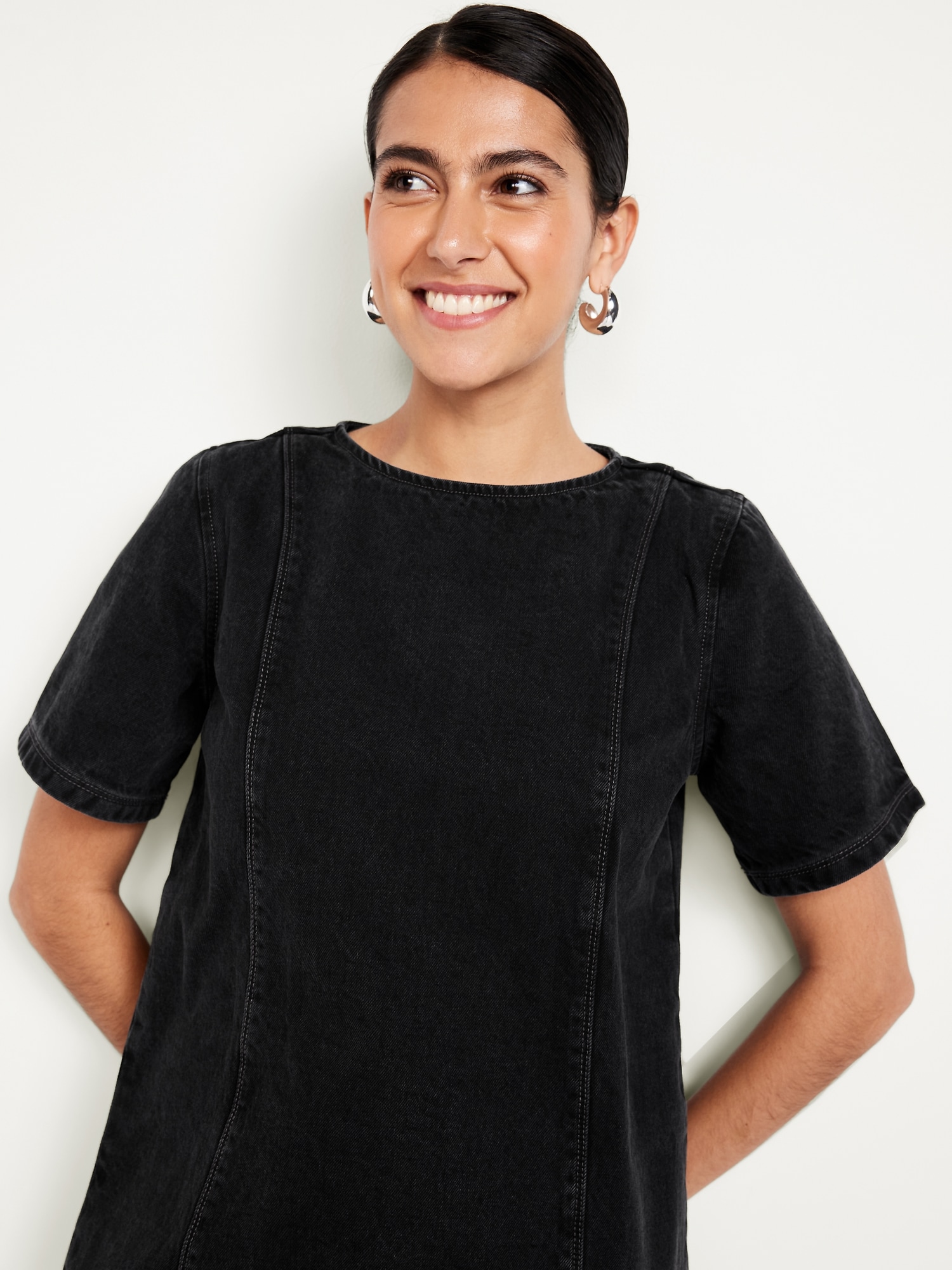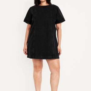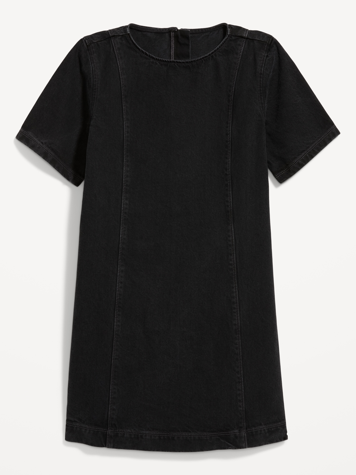 Denim Mini Dress: crew neck, short sleeves, center back zipper, seamed front and back, #798224
