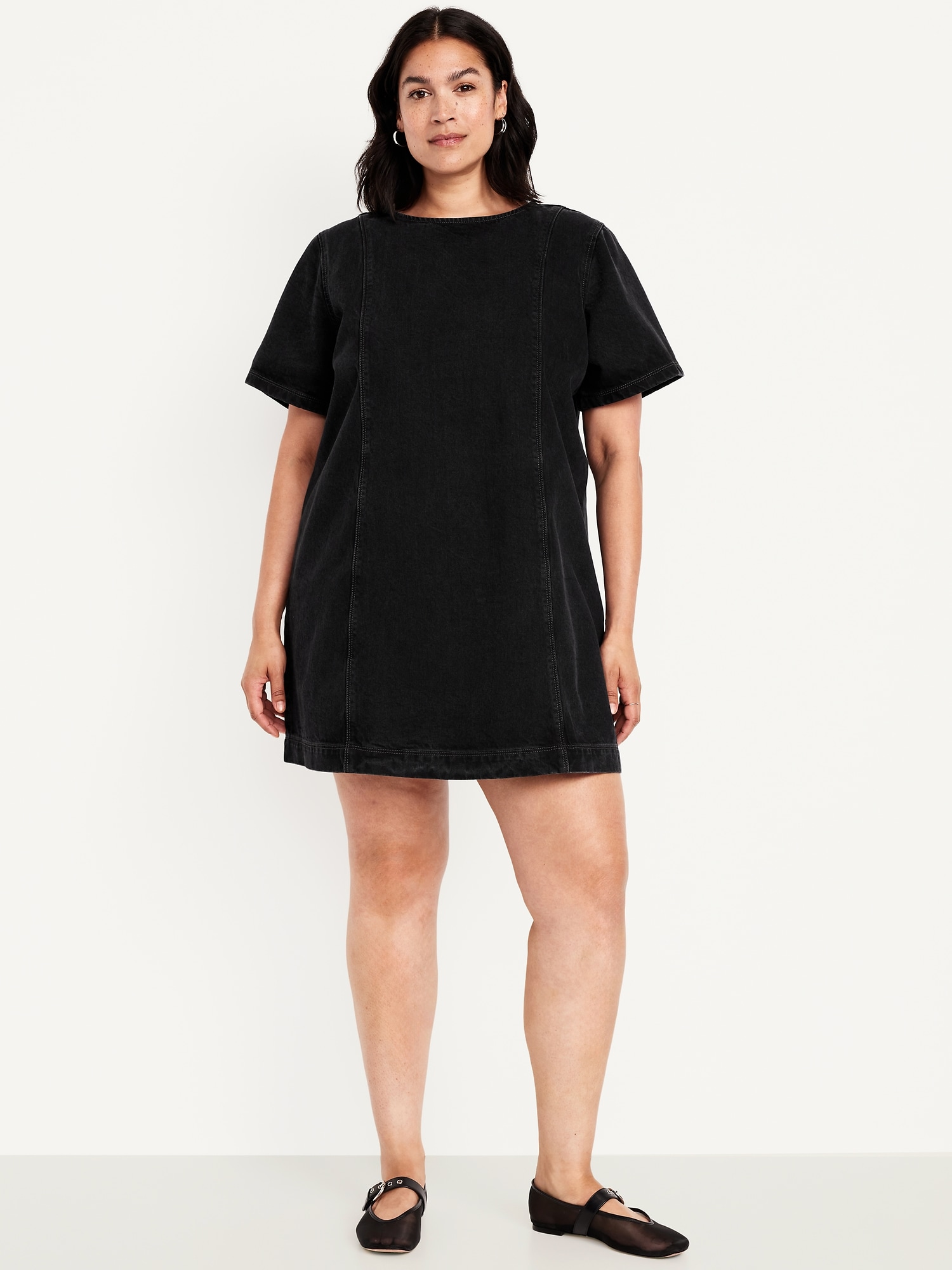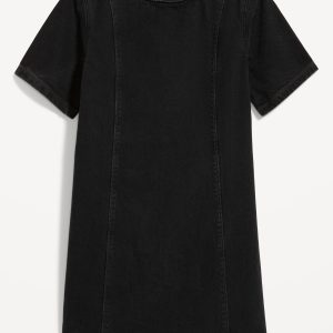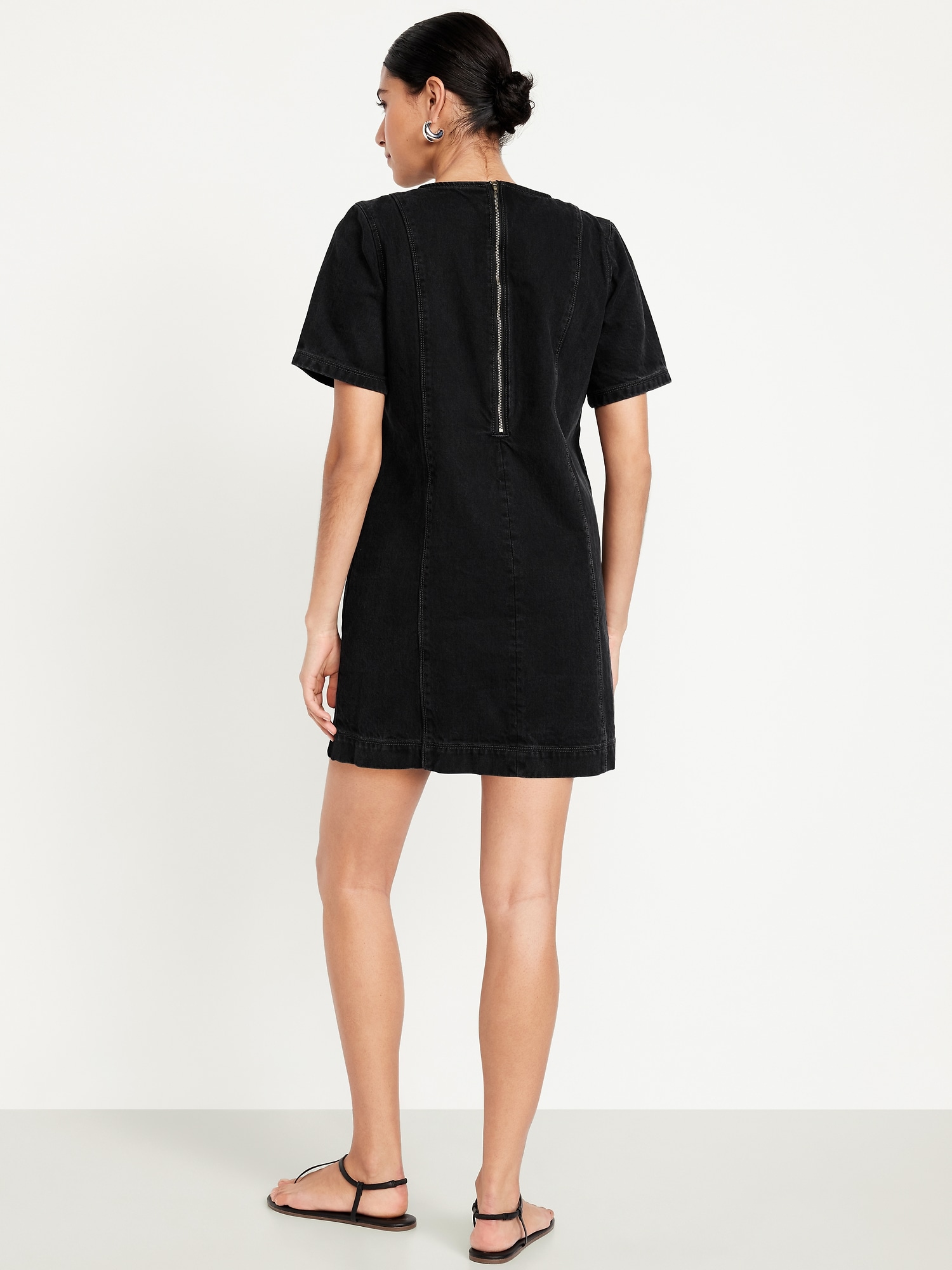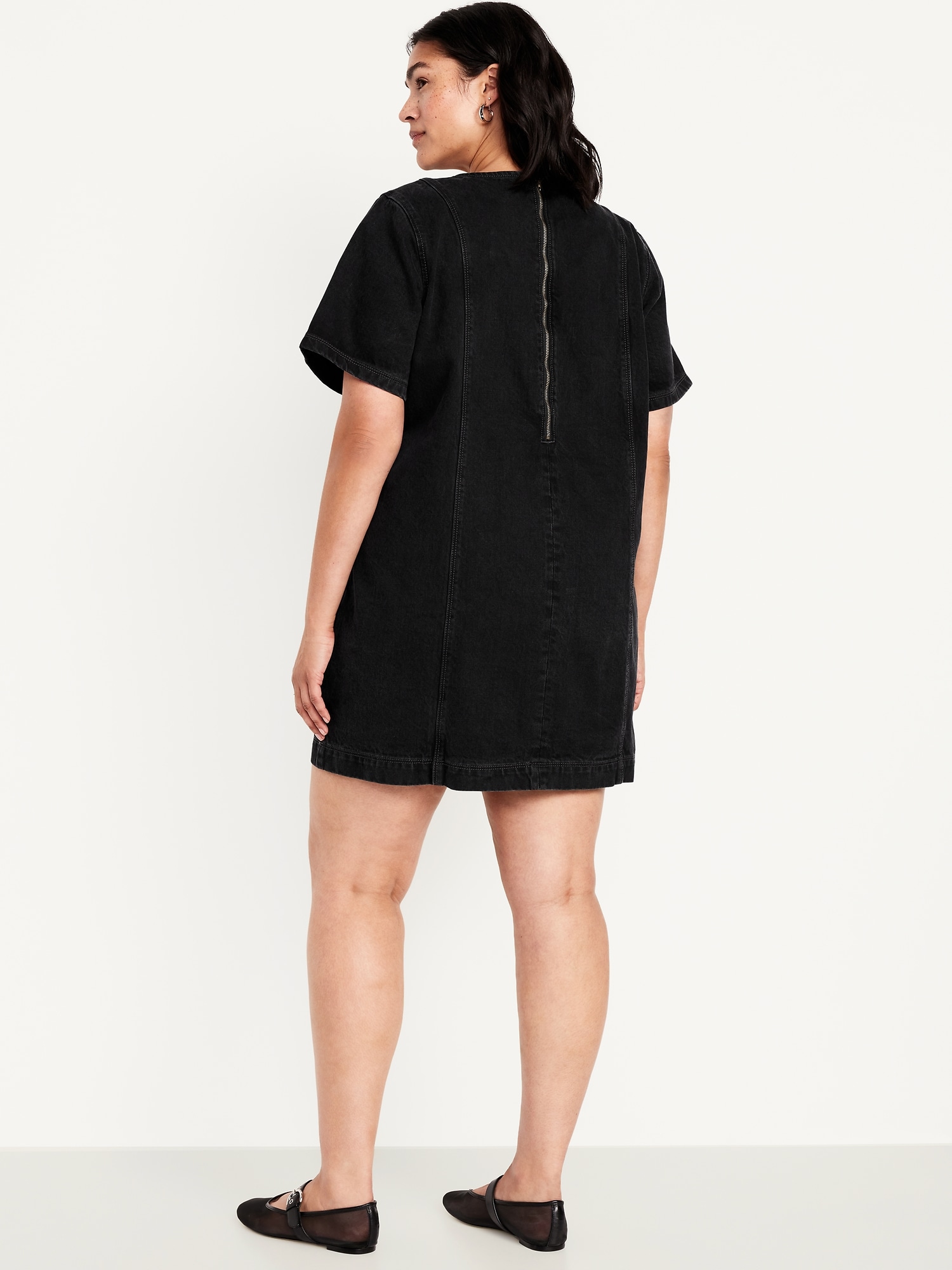Denim Mini Dress: crew neck, short sleeves, center back zipper, seamed front and back, #798224