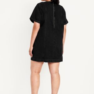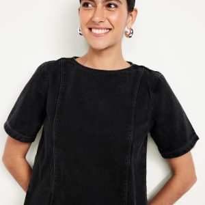 Denim Mini Dress: crew neck, short sleeves, center back zipper, seamed front and back, #798224