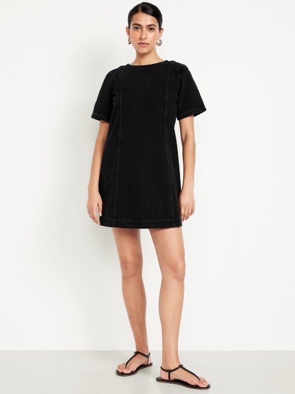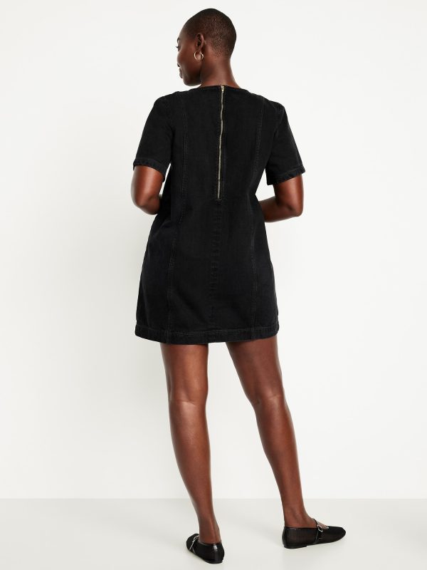 Denim Mini Dress: crew neck, short sleeves, center back zipper, seamed front and back, #798224
