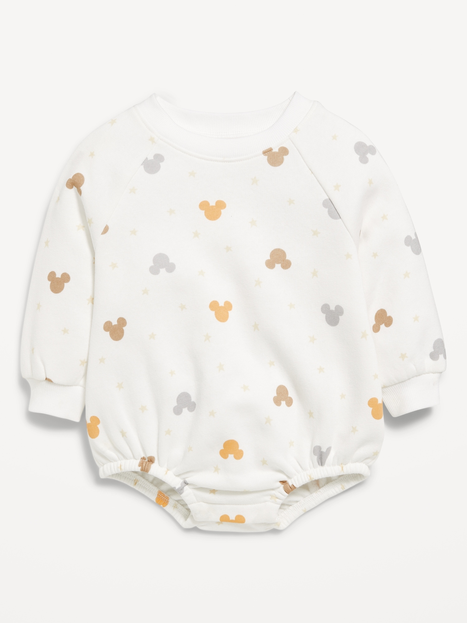 Disney© Fleece One-Piece Romper for Baby: crew neck, long raglan sleeves, elasticized bubble leg openings, hidden snaps along inseam, licensed graphic, © Disney., #802590
