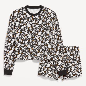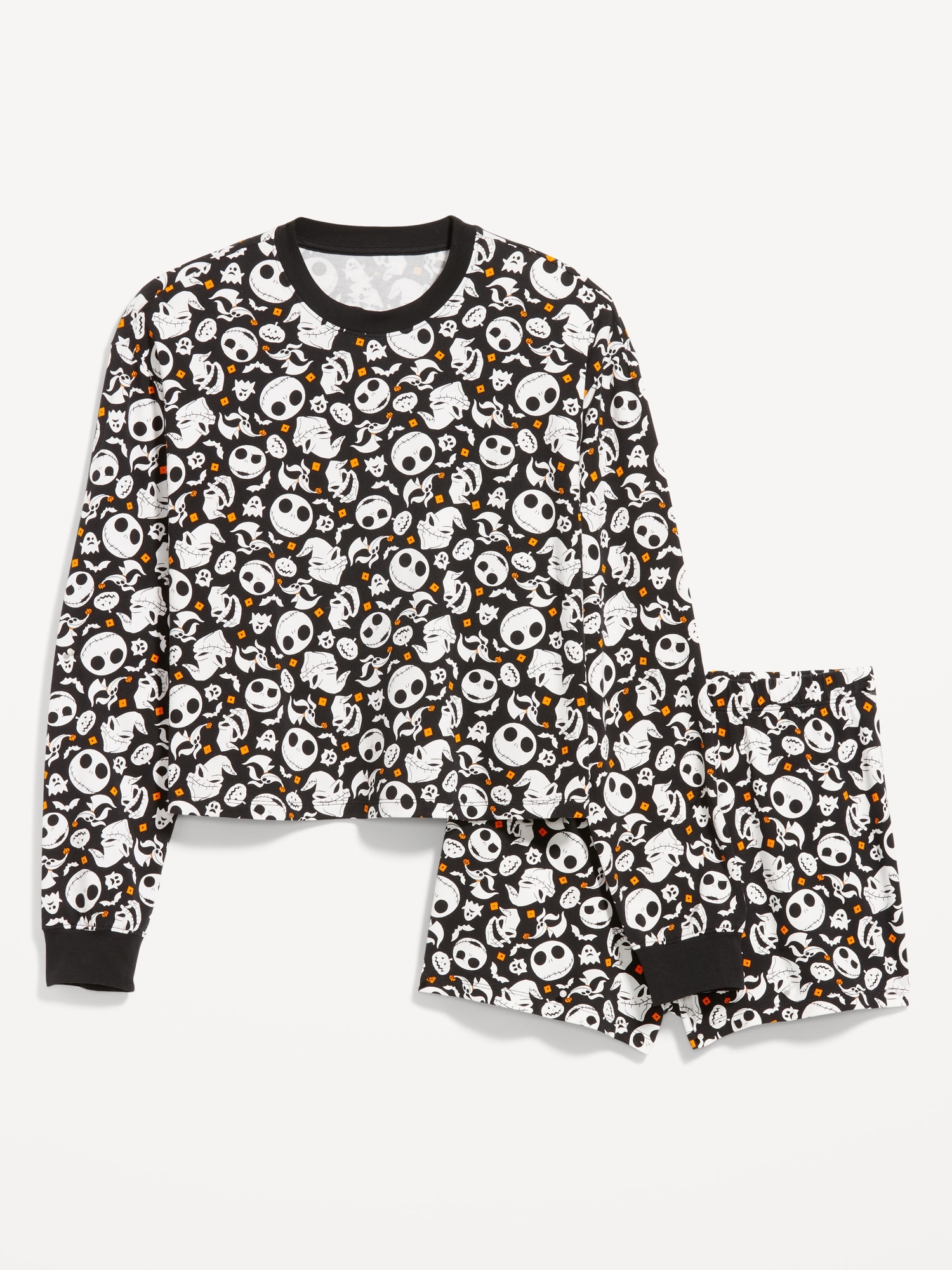 Disney© Halloween Pajama Short Set: set includes sleep top and coordinating shorts, crew neck, long drop-shoulder sleeves, elastic-waist sleep shorts, licensed graphic, © Disney, #804829