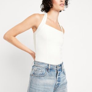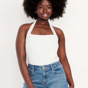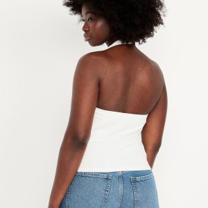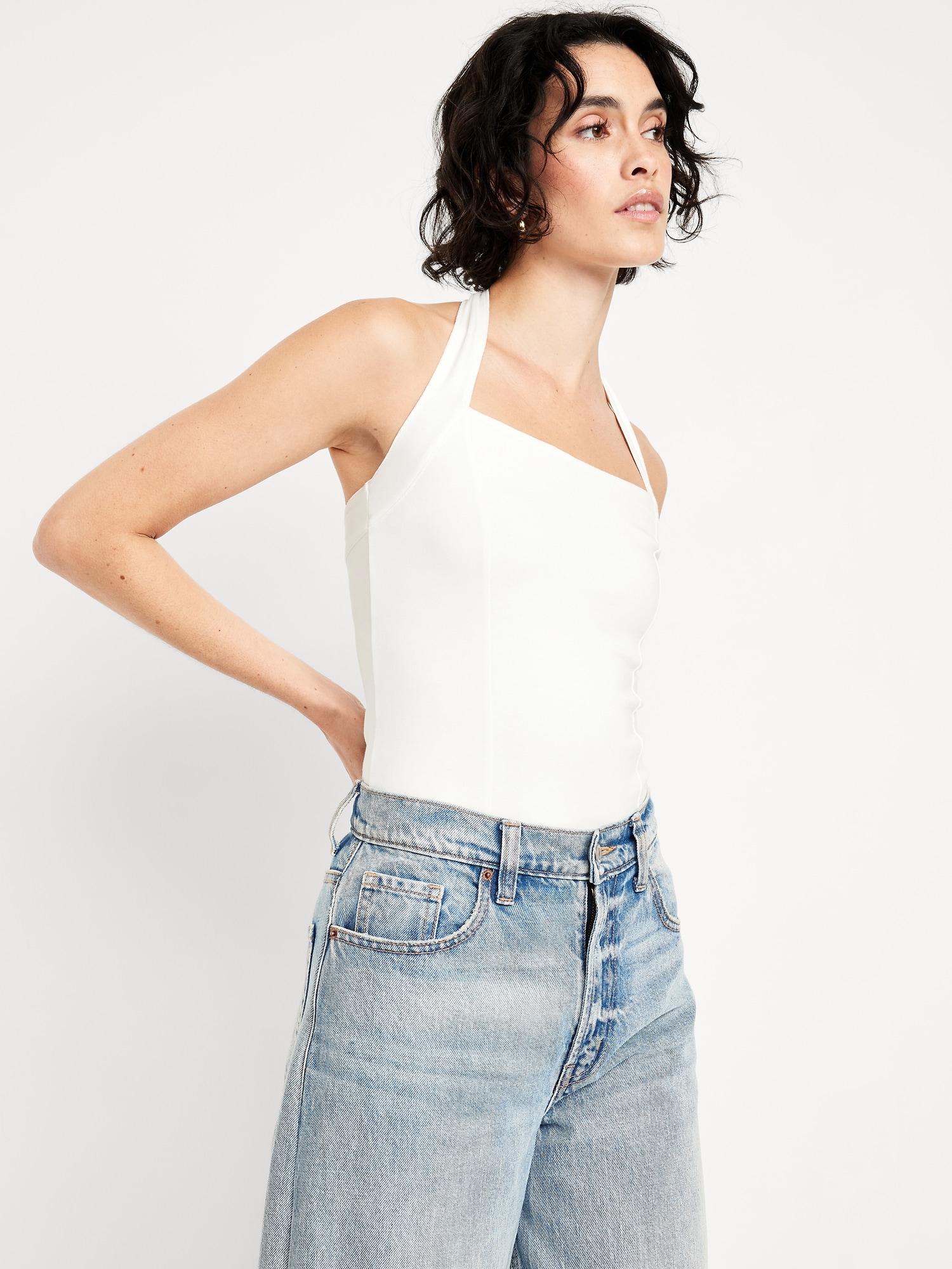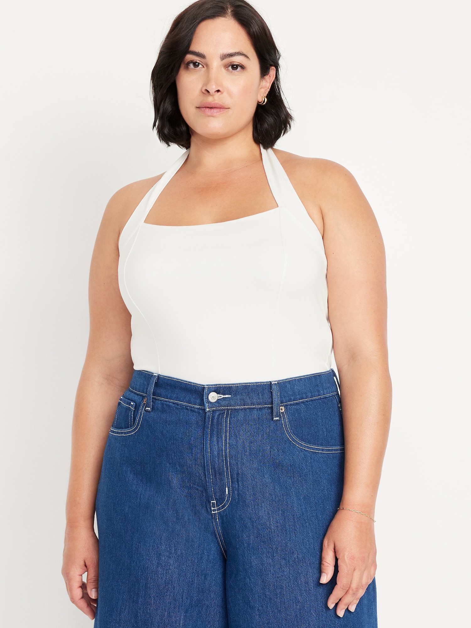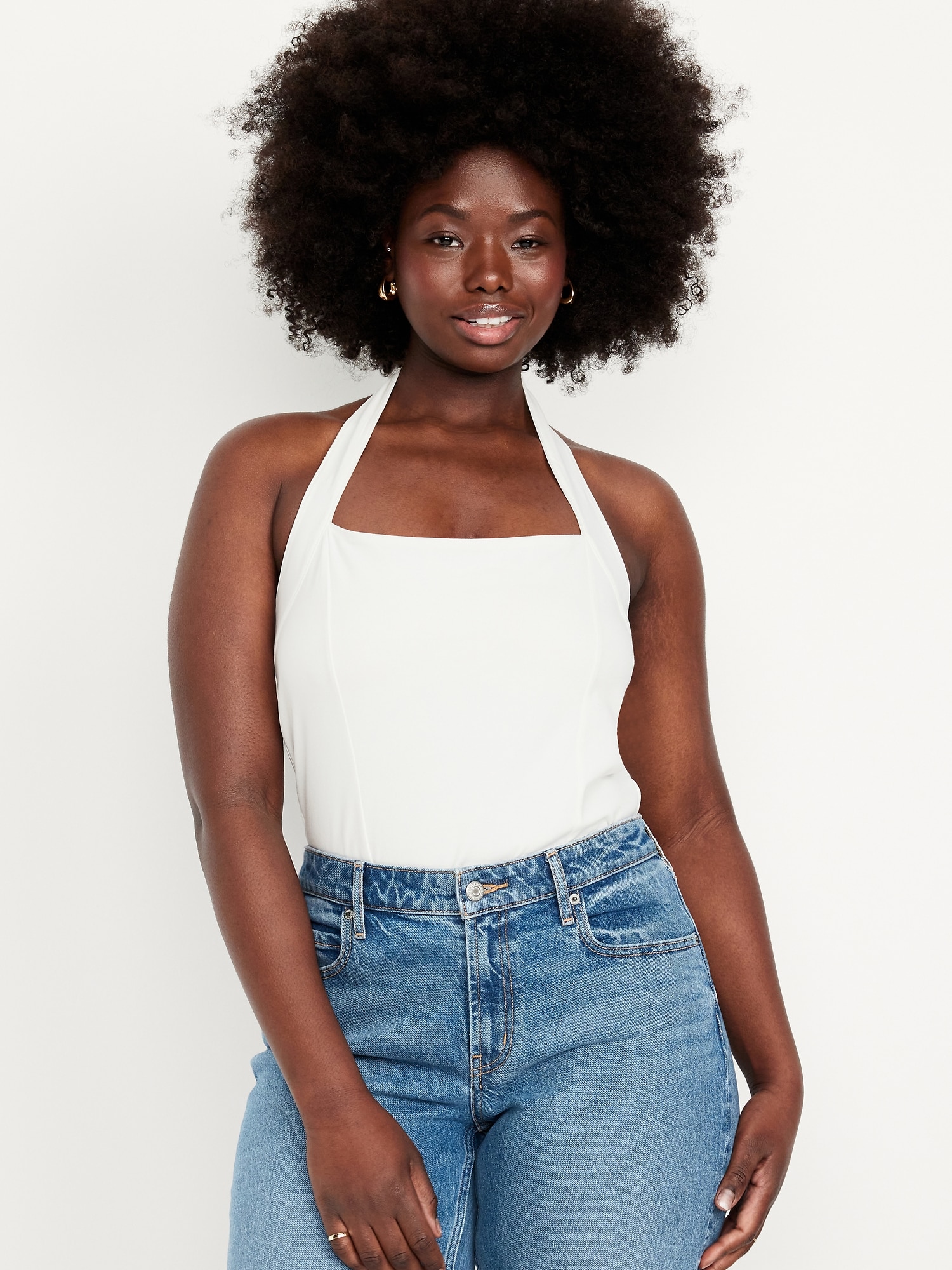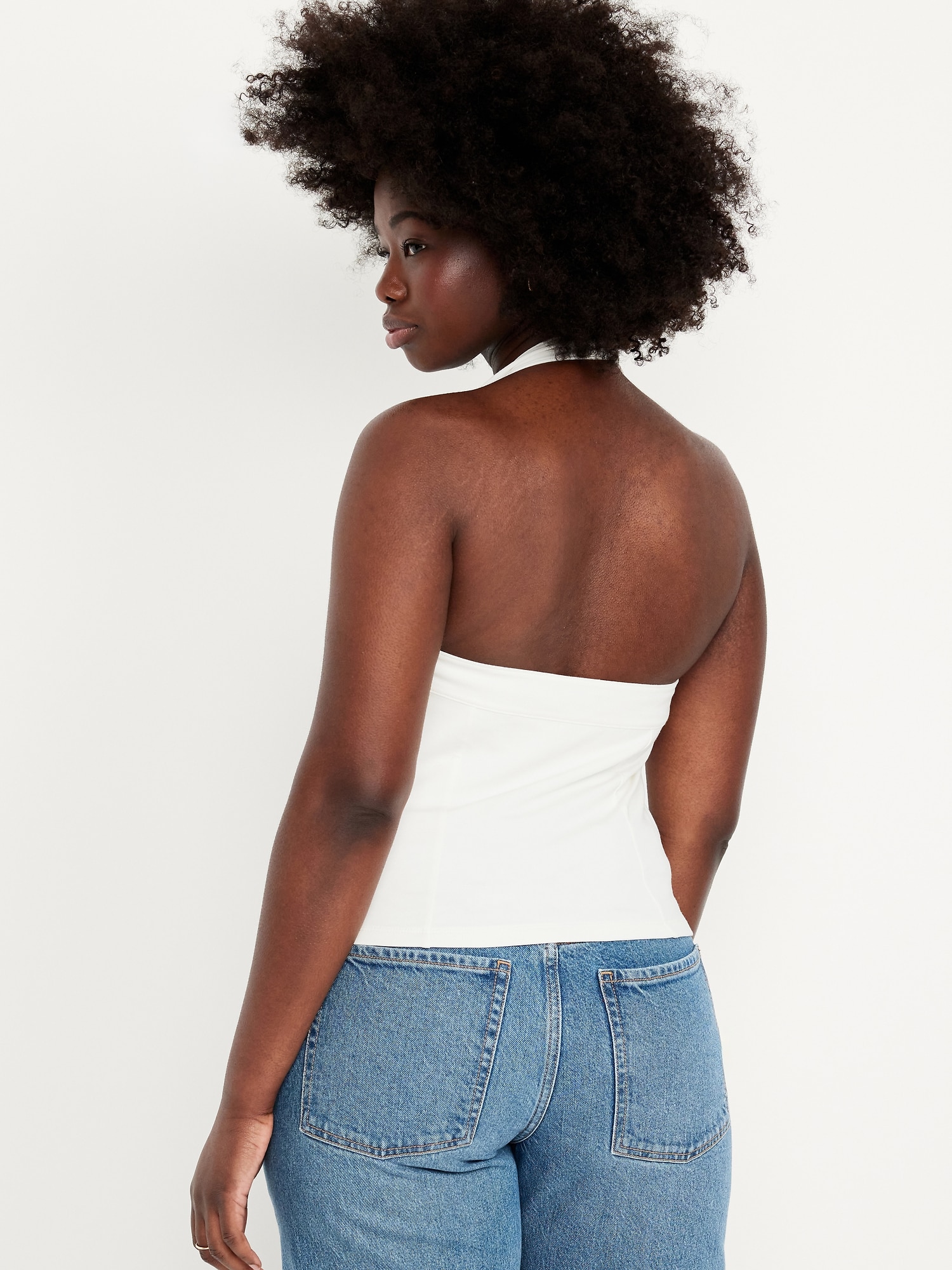 Double-Layer Halter Top: straight neck, halter strap, seamed front and back, #748090