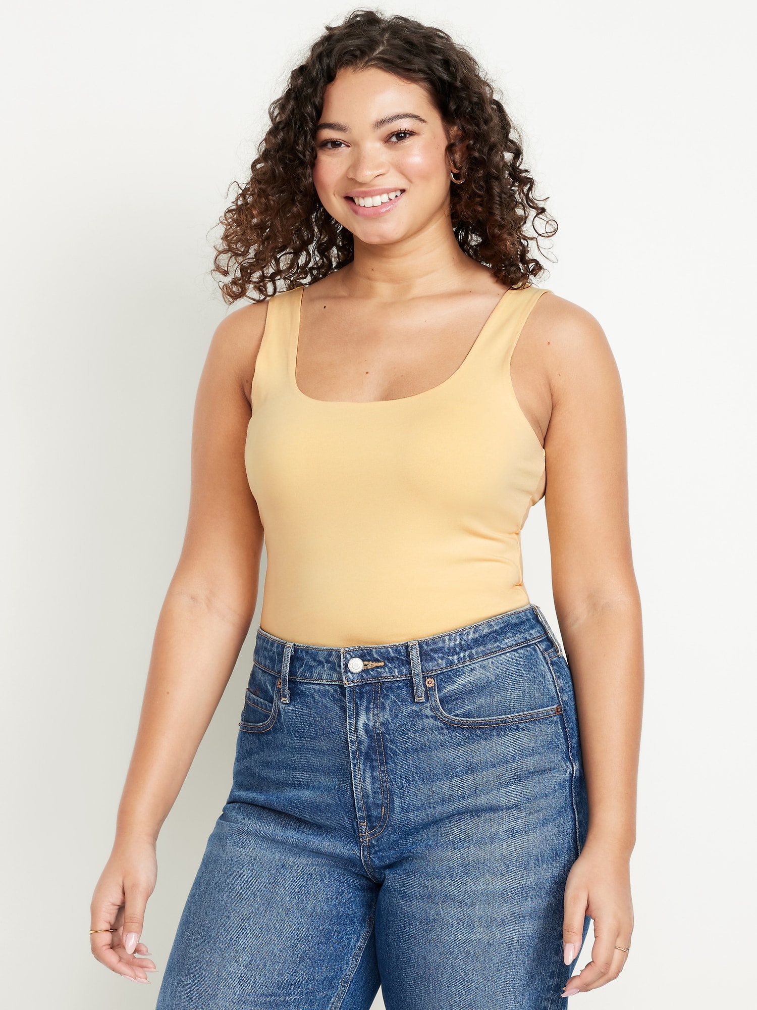 Double-Layer Scoop-Neck Tank Top: scoop neck, wide straps, scoop back, #692926
