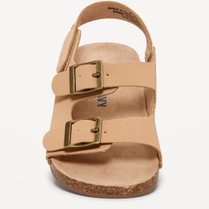 Double-Strap Sandals for Baby: ankle strap, decorative bow across foot, faux-cork midsole, cushioned foot bed, #762298