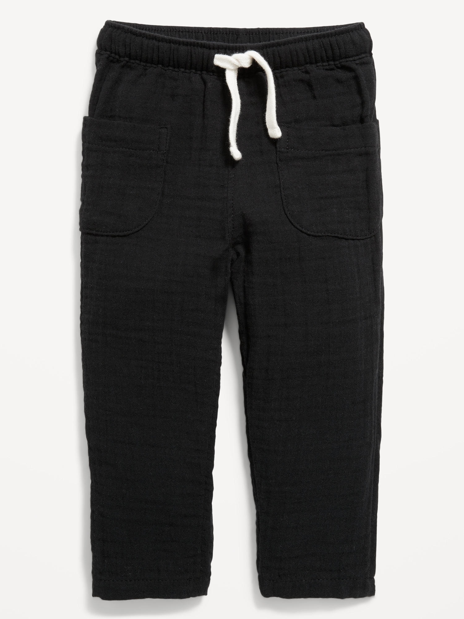 Double-Weave Pants for Baby: elasticized waistband, functional drawstring, side patch pockets, online exclusive, #761915