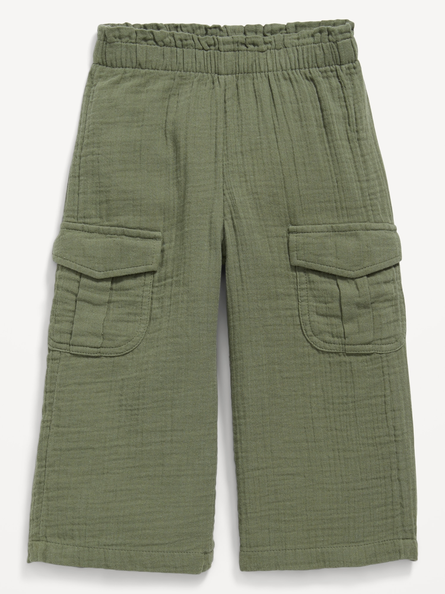 Double-Weave Wide-Leg Cargo Pants for Toddler Girls: ruffled elasticized waistband, flap cargo utility pockets at each leg, wide leg, online exclusive, #762432