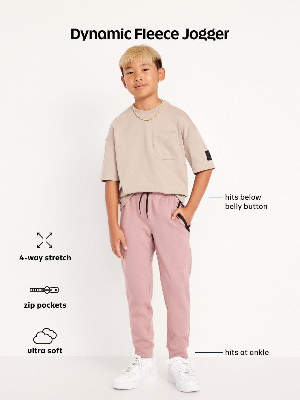 Dynamic Fleece Jogger Sweatpants for Boys: elasticized waistfunctional drawstring, side zip pockets, banded leg cuffs, #523869