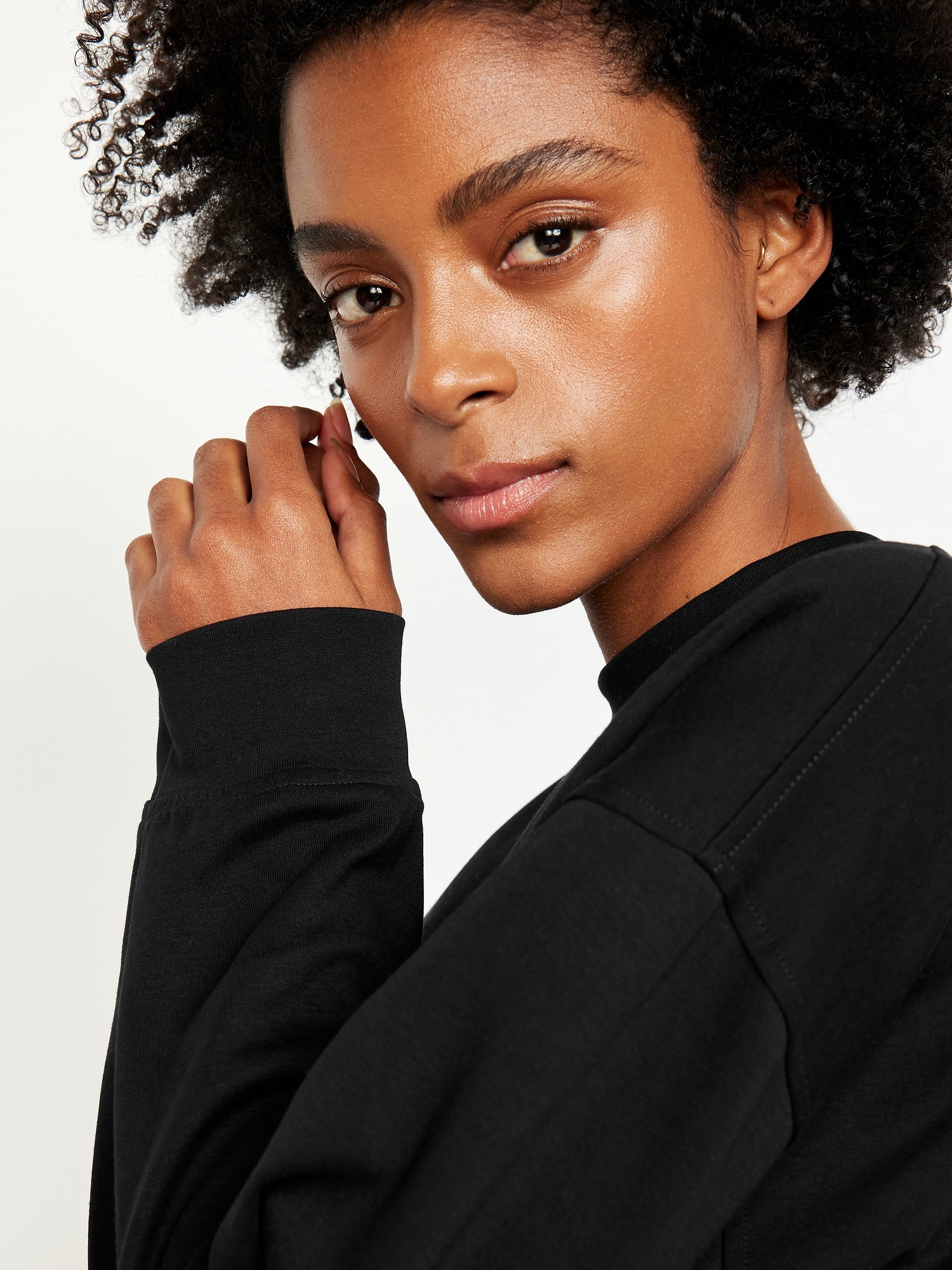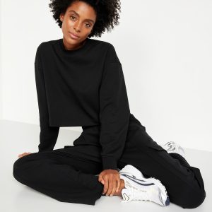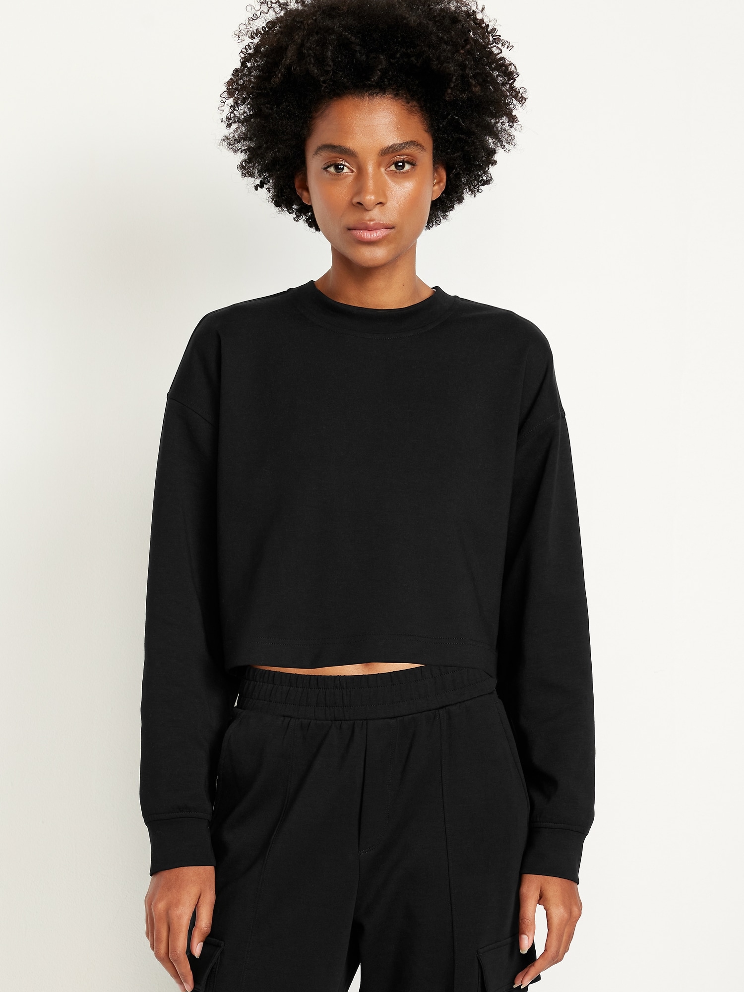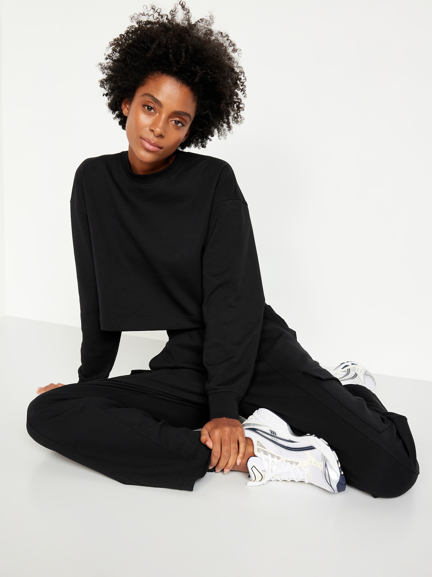 Dynamic Fleece Oversized Crop Sweatshirt: Featuring Dynamic Fleece. Soft, smooth fleece plus made-to-move stretch.rib-knit crew neck, long dolman sleeves, graphic varies, pullover style, #692129