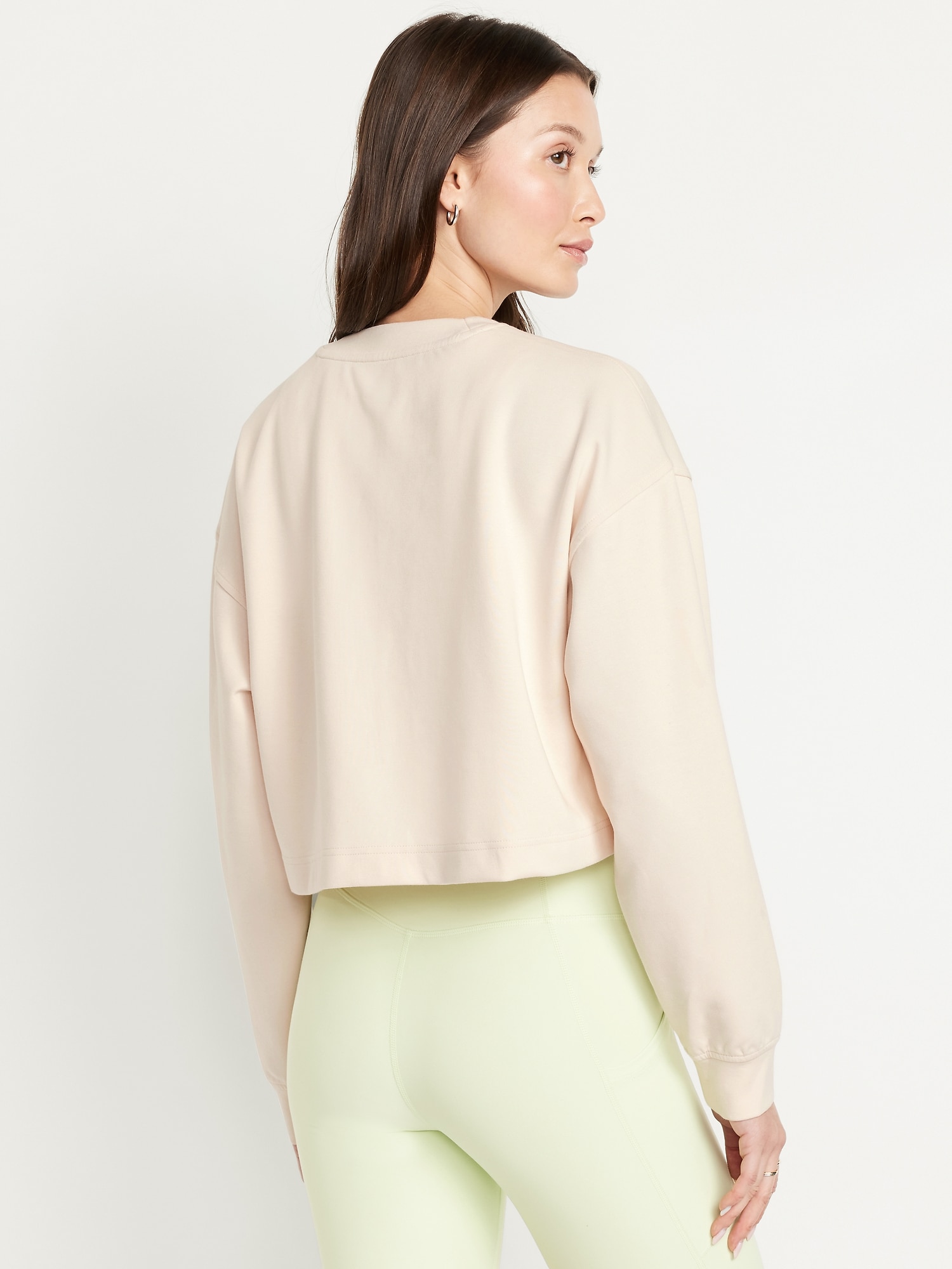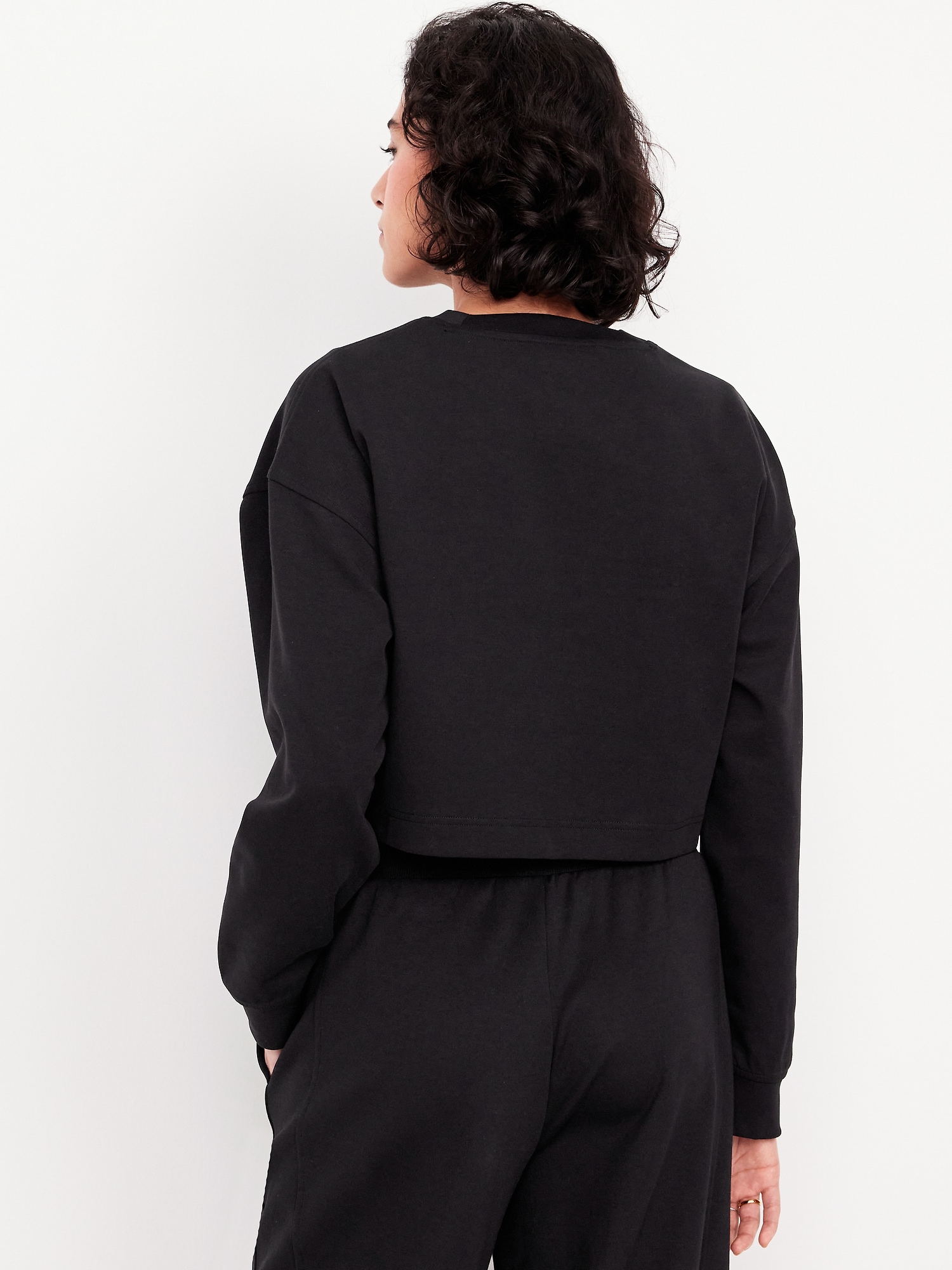 Dynamic Fleece Oversized Crop Sweatshirt: Featuring Dynamic Fleece. Soft, smooth fleece plus made-to-move stretch.rib-knit crew neck, long dolman sleeves, graphic varies, pullover style, #692129