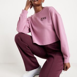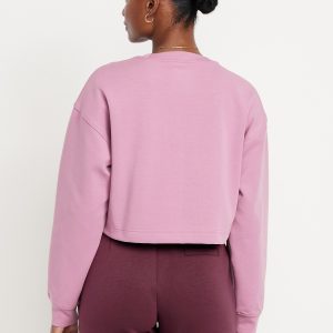 Dynamic Fleece Oversized Crop Sweatshirt: Featuring Dynamic Fleece. Soft, smooth fleece plus made-to-move stretch.rib-knit crew neck, long dolman sleeves, graphic varies, pullover style, #692129