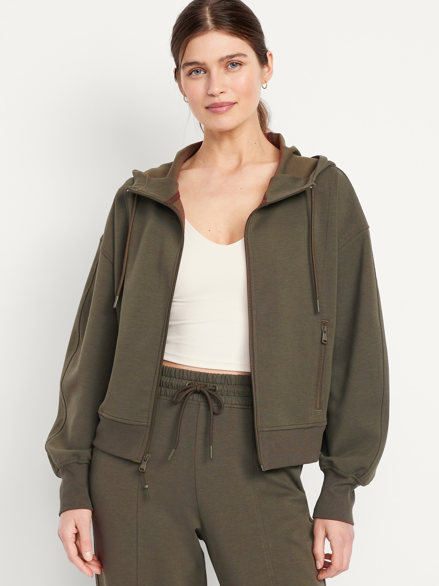 Dynamic Fleece Oversized Zip Hoodie Sweatshirt: Featuring Dynamic Fleece. Soft, smooth fleece plus made-to-move stretch.drawstring hood, long sleeves, full-zip front, front zip pockets, #784468