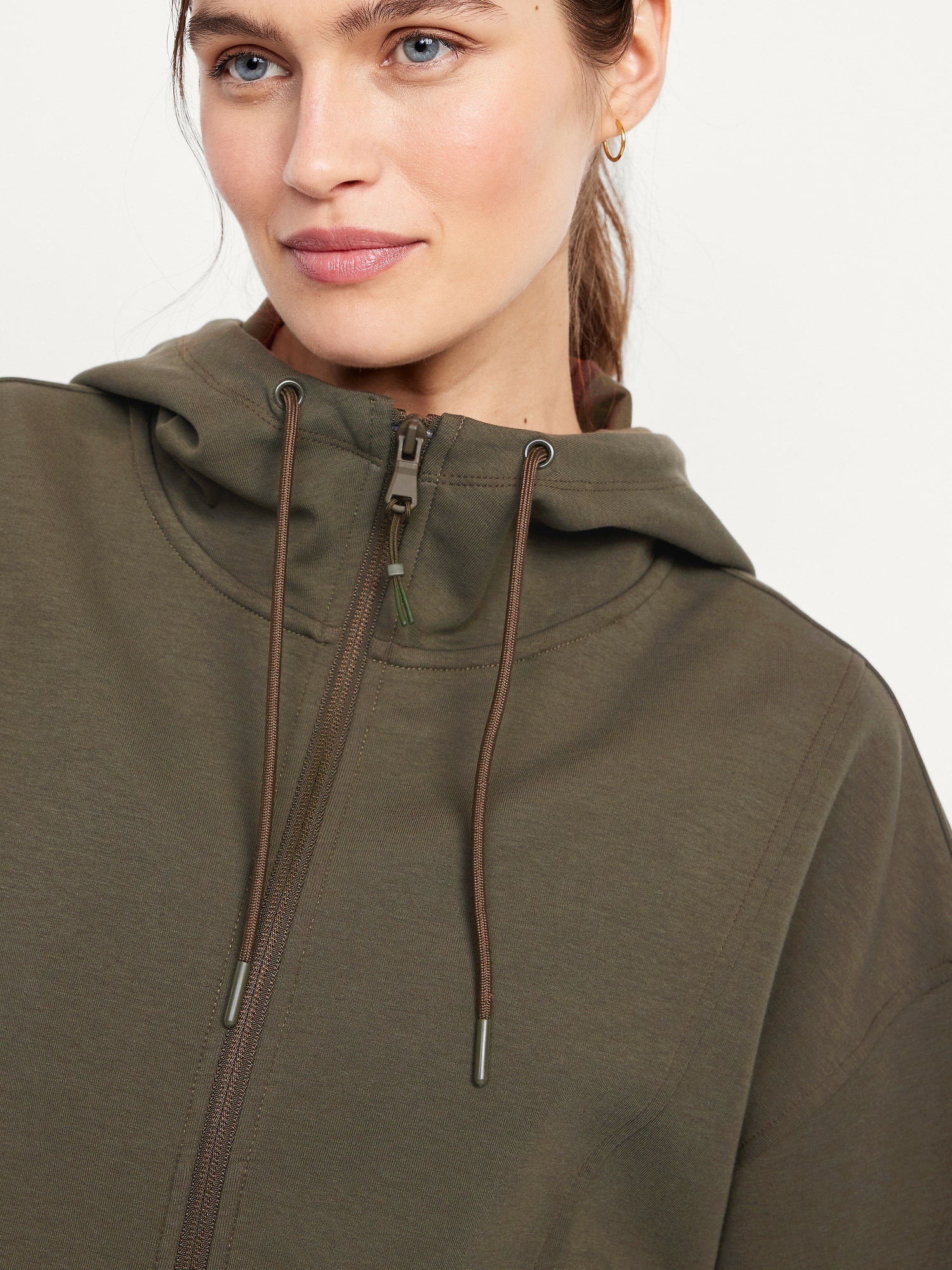 Dynamic Fleece Oversized Zip Hoodie Sweatshirt: Featuring Dynamic Fleece. Soft, smooth fleece plus made-to-move stretch.drawstring hood, long sleeves, full-zip front, front zip pockets, #784468