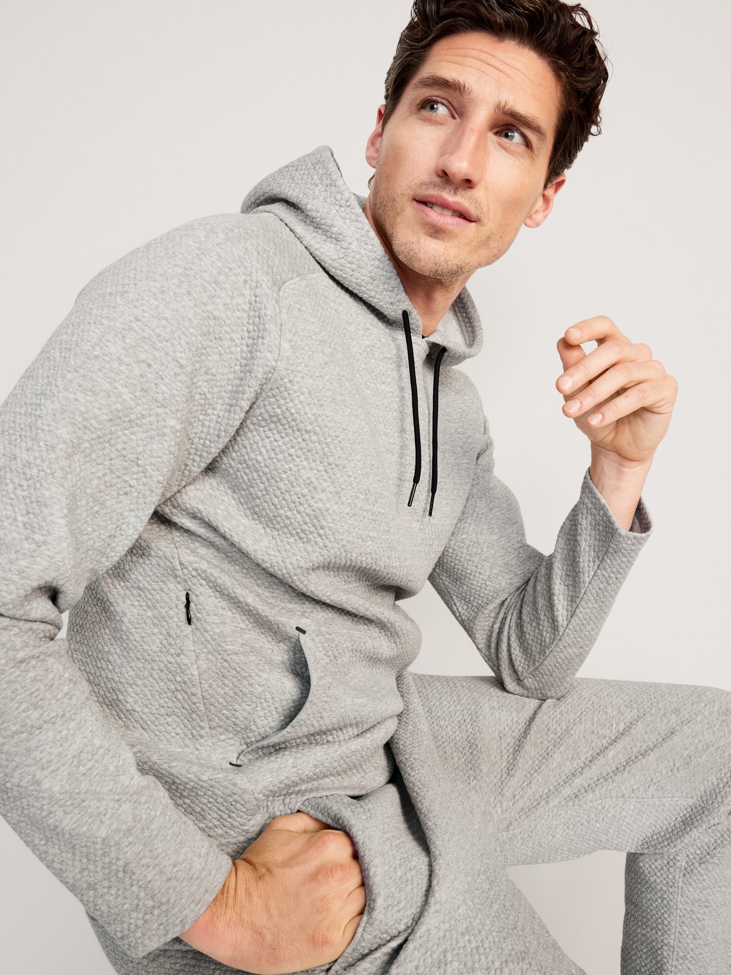 Dynamic Fleece Textured Hoodie: Featuring Dynamic Fleece. Soft, smooth fleece plus made-to-move stretch.crew neck, long sleeves, front pockets, hidden zip stash pocket, four-way stretch, pullover style, #811657