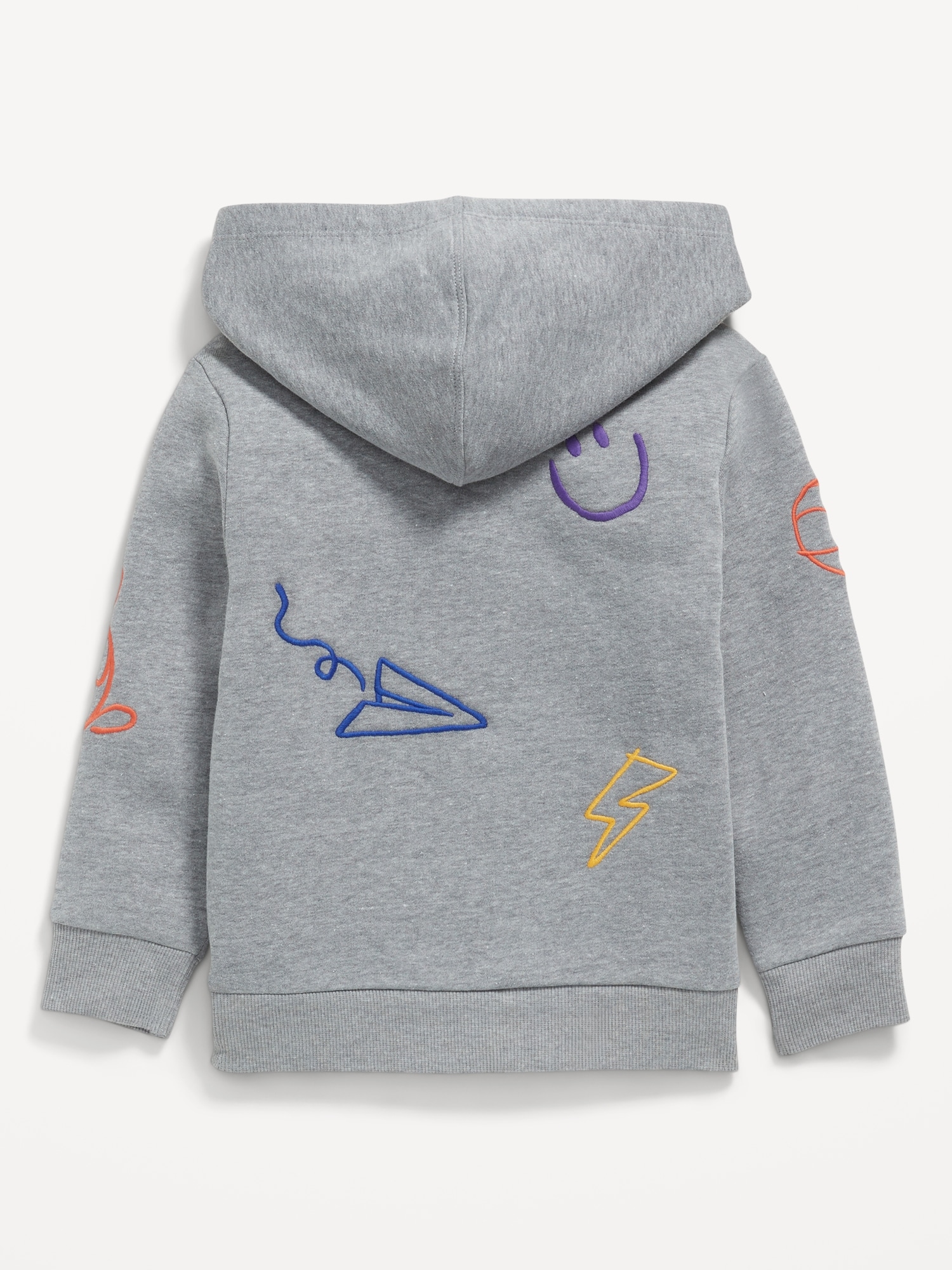 Embroidered Pullover Hoodie for Toddler Boys: built-in hood, long sleeves, kangaroo pocket, all-over embroidery, banded hem, #750654