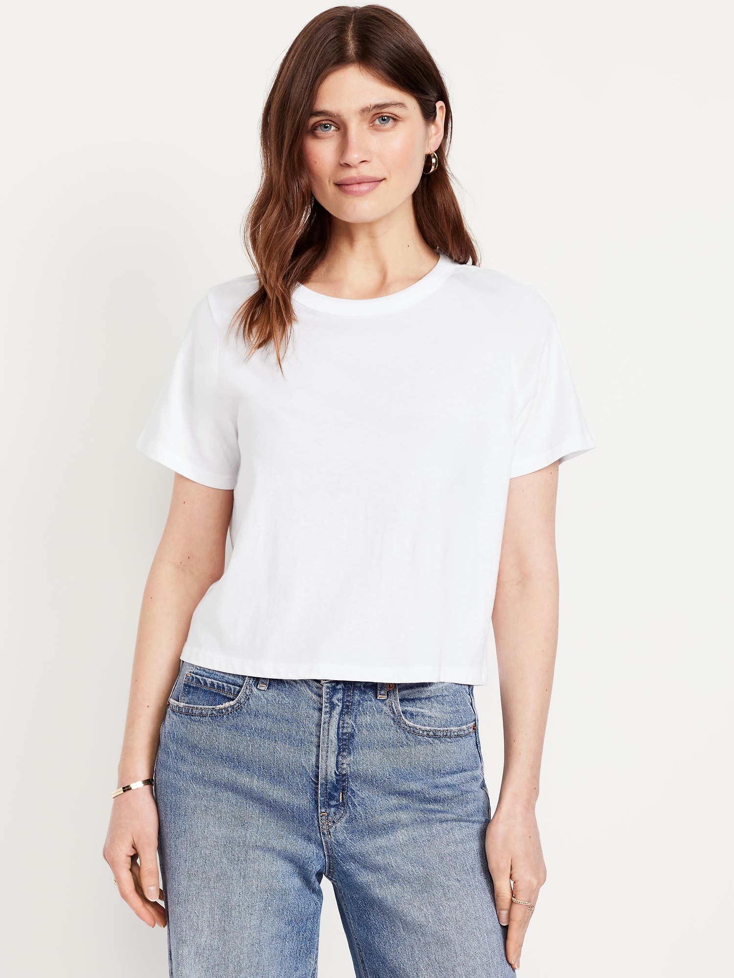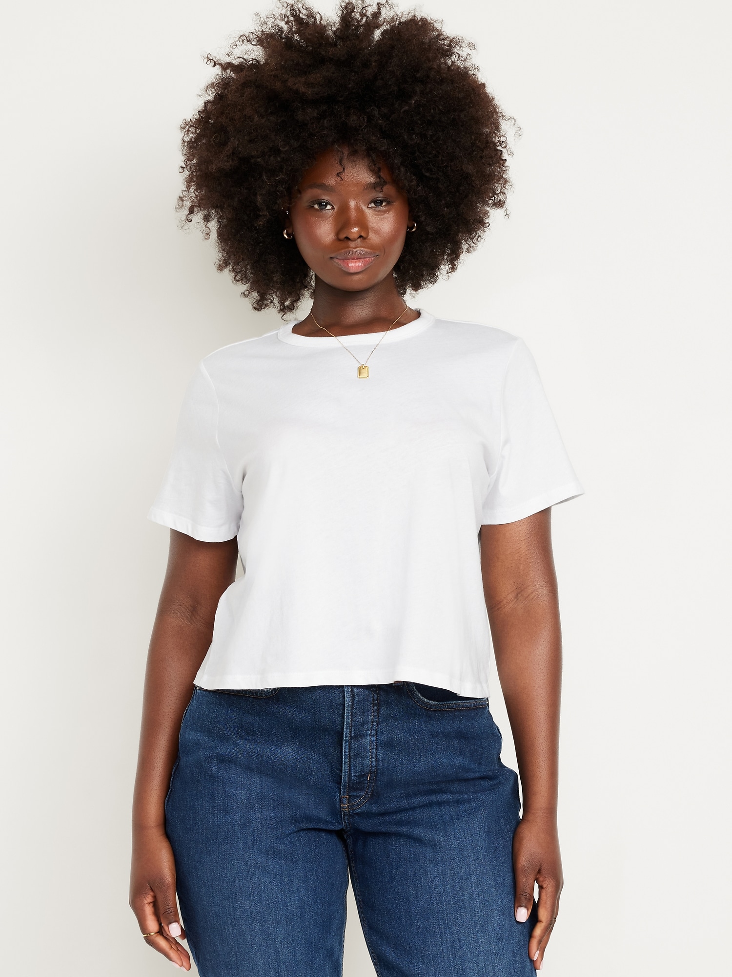 EveryWear Crop T-Shirt: Our EveryWear T-shirts are super-soft, with a comfortable, relaxed fit. Wear ’em with everything.rib-knit crew neck, short sleeves, #715711