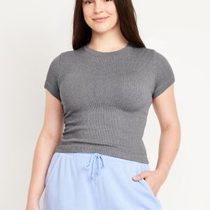 Exhale Seamless Fitted Rib T-Shirt: Ribbed nylon with incredible stretch and softness.crew neck, short sleeves, go-dry wicks moisture, #892256