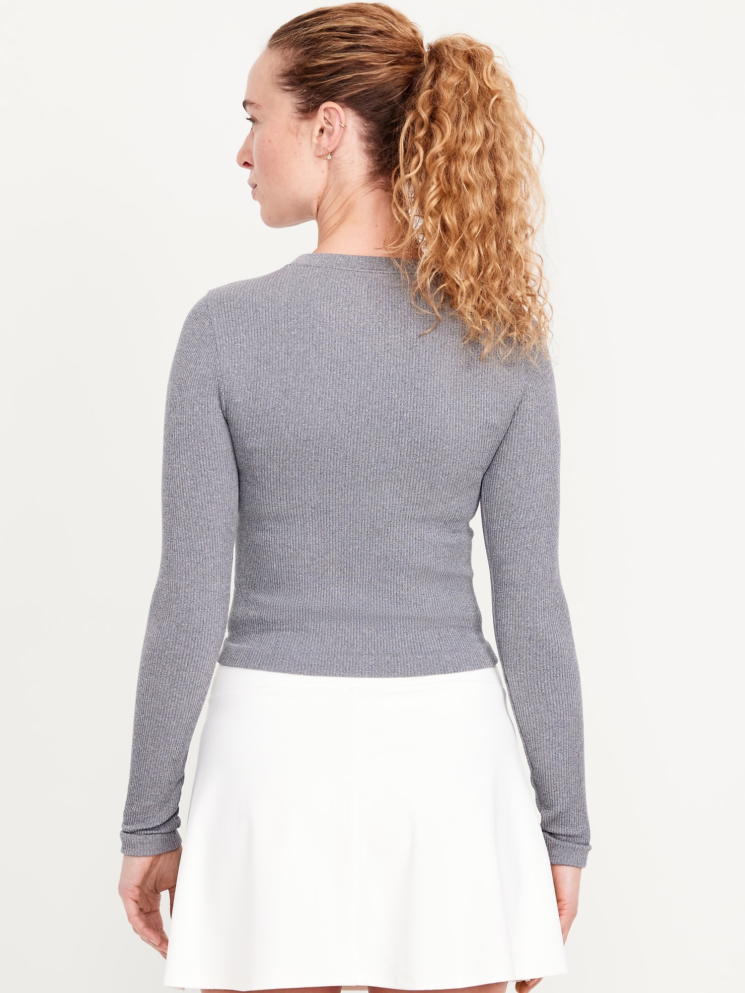 Exhale Seamless Fitted Rib T-Shirt: Ribbed nylon with incredible stretch and softness.crew neck, long sleeves, go-dry wicks moisture, #569705
