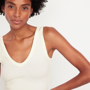 Exhale Seamless V-Neck Rib Tank: Ribbed nylon with incredible stretch and softness.v-neck, wide straps, go-dry wicks moisture, #663772