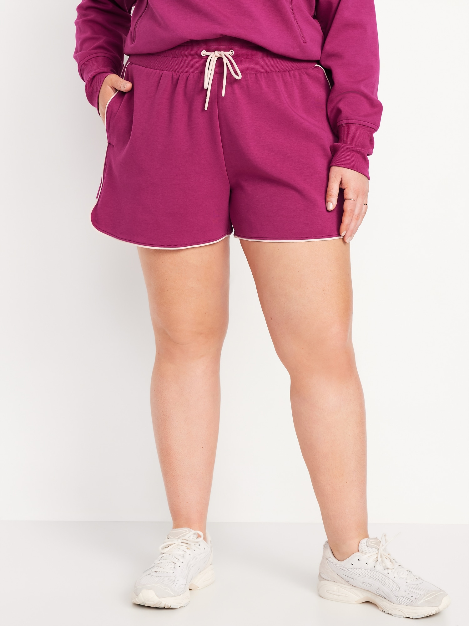 Extra High-Waisted Dynamic Fleece Sweat Shorts: Featuring Dynamic Fleece. Soft, smooth fleece plus made-to-move stretch.elastic-drawstring waist, side pockets, dolphin hem, breathable, pull-on style, #662947