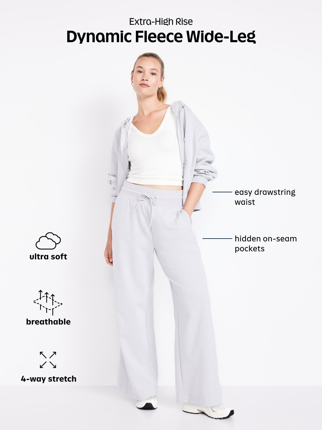 Extra High-Waisted Dynamic Fleece Wide-Leg Sweatpants: Featuring Dynamic Fleece. Soft, smooth fleece plus made-to-move stretch.drawcord waist, on-seam pockets, pull-on style, #784449