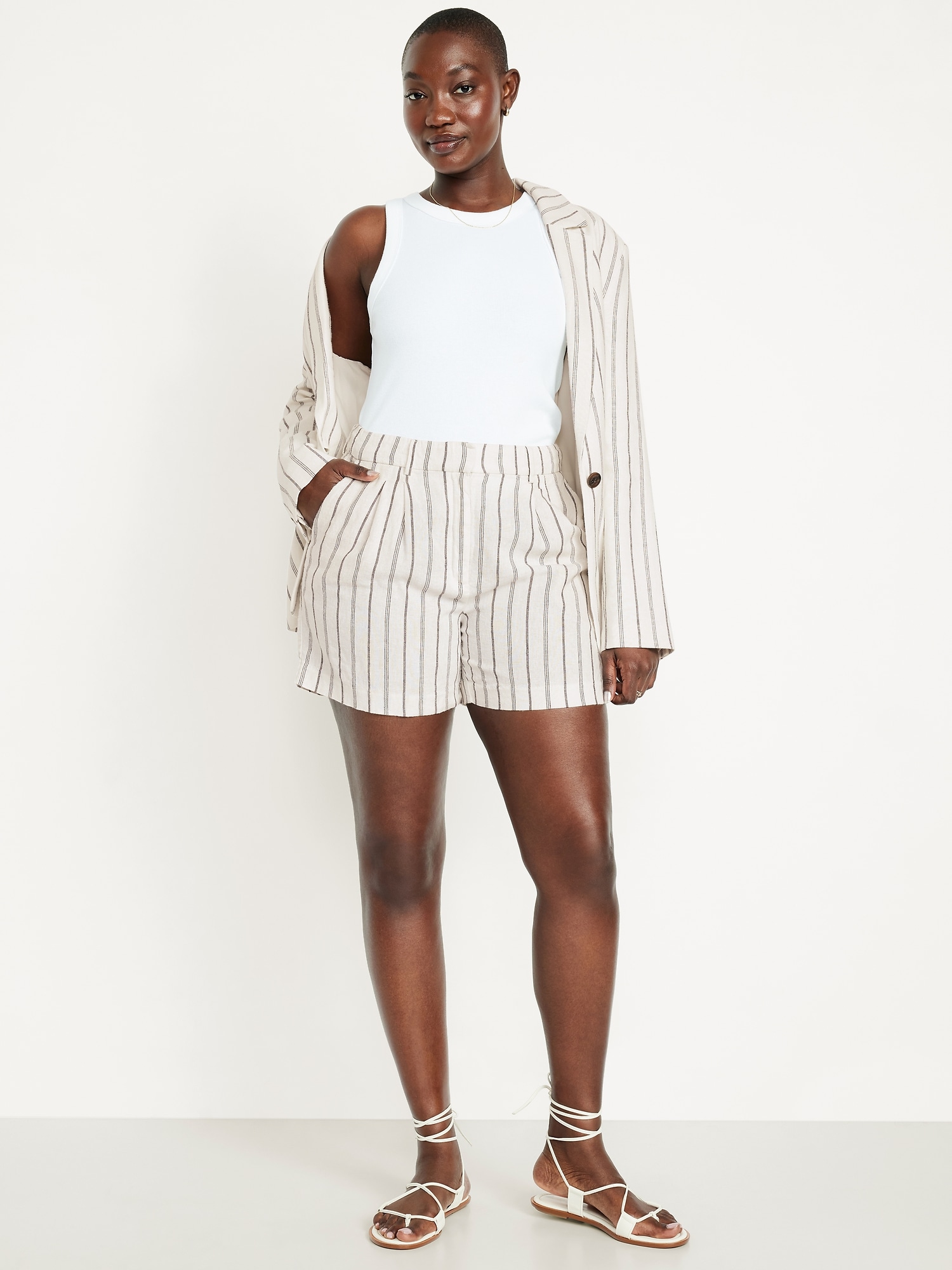 Extra High-Waisted Linen-Blend Taylor Trouser Shorts — 5-inch inseam