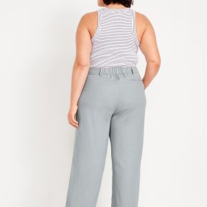 Extra High-Waisted Linen-Blend Taylor Wide-Leg Trouser Pants: Tailored pleats. Loose fit. Don’t do 9-5 (or 5-9) without them.partially-elasticized waistband, hook-and-bar closure, hip pockets, functional back welt pocket, striped print, wide leg, #683376