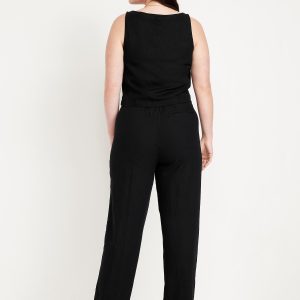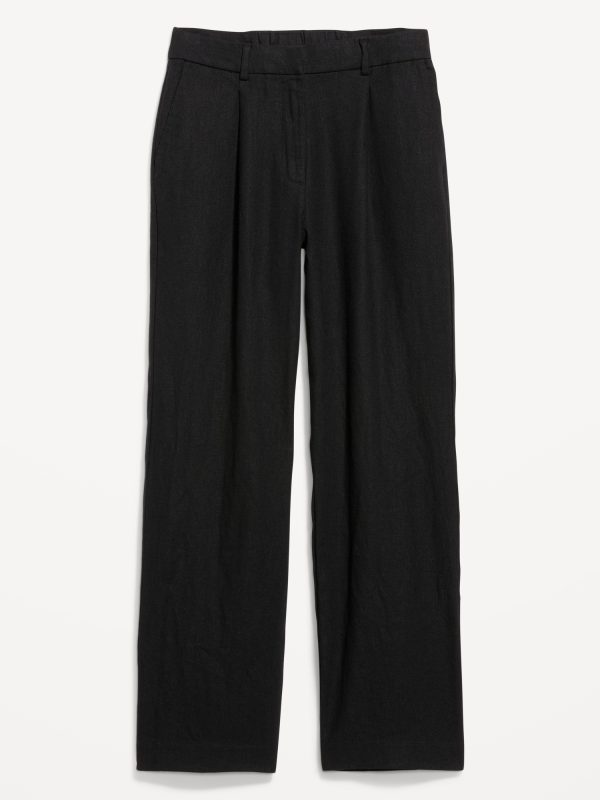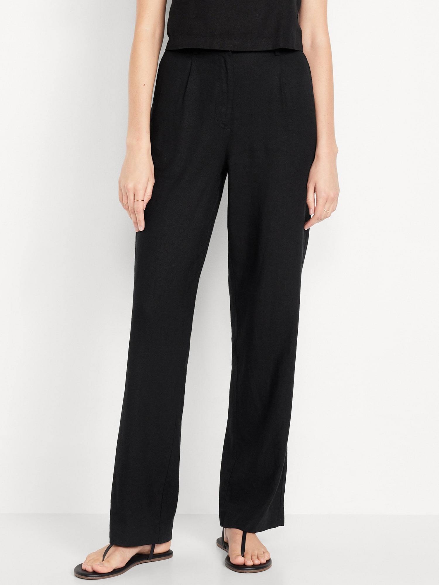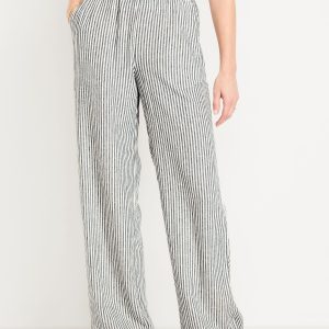Extra High-Waisted Linen-Blend Taylor Wide-Leg Trouser Pants: Tailored pleats. Loose fit. Don’t do 9-5 (or 5-9) without them.partially-elasticized waistband, hook-and-bar closure, hip pockets, functional back welt pocket, striped print, wide leg, #683376
