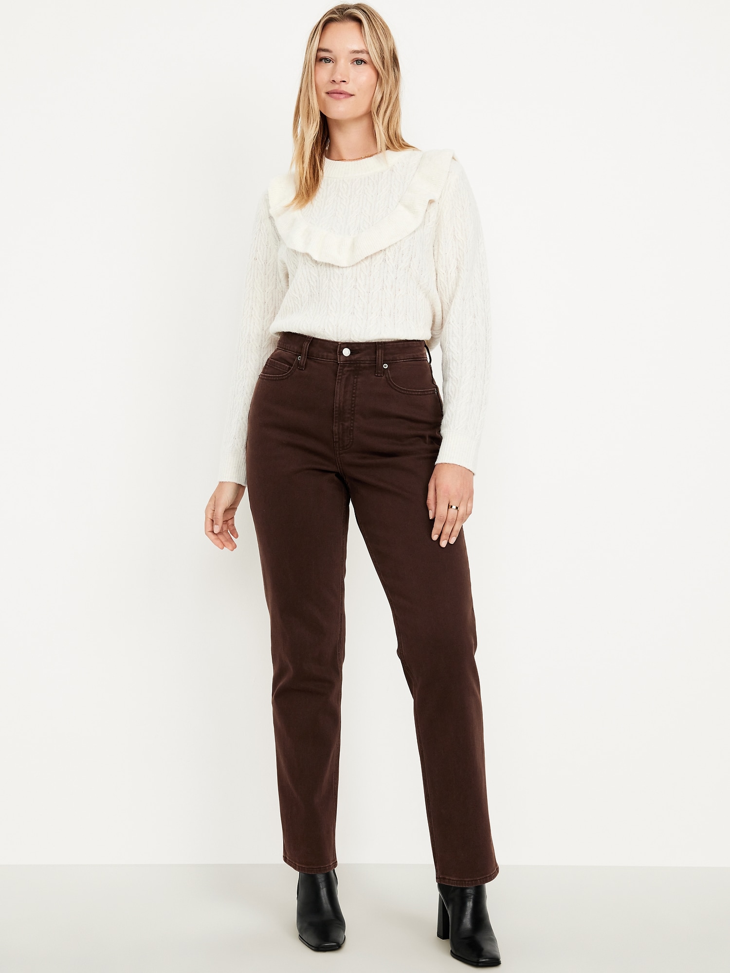 Extra High-Waisted Straight Jeans: Snatched waist with a streamlined leg and a classic silhouette.extra high waist, zip fly, straight leg, #805695