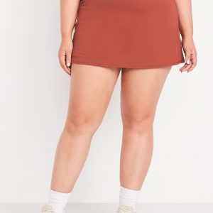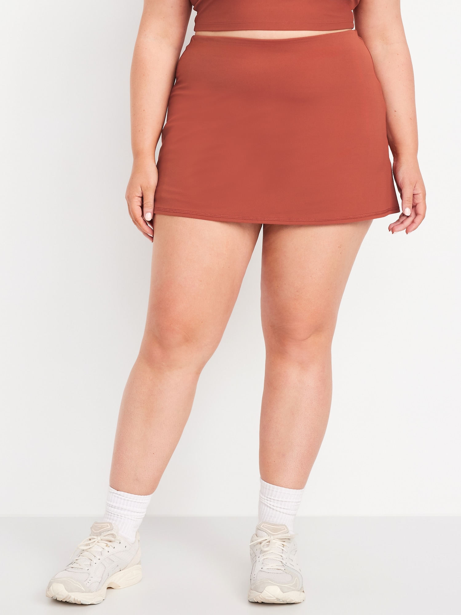 Extra High-Waisted StudioSmooth Skort: Featuring StudioSmooth. Buttery soft and breathable, with a barely-there feel.extra high waist, built-in bike shorts with right pocket for phone, go-dry wicks moisture, breathable, #748686