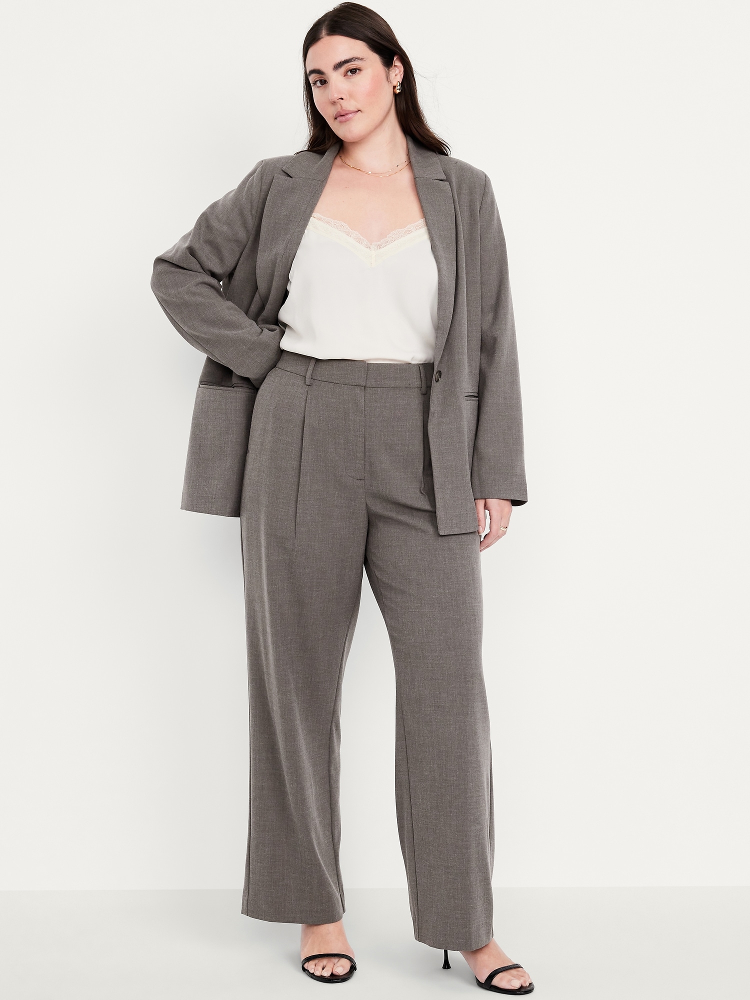Extra High-Waisted Taylor Wide-Leg Trouser Pants: Tailored pleats. Loose fit. Don’t do 9-5 (or 5-9) without them.adjustable waistband, belt loops, hook-and-bar closure, zip fly, hip pockets, functional back welt pocket, wide leg, #791424