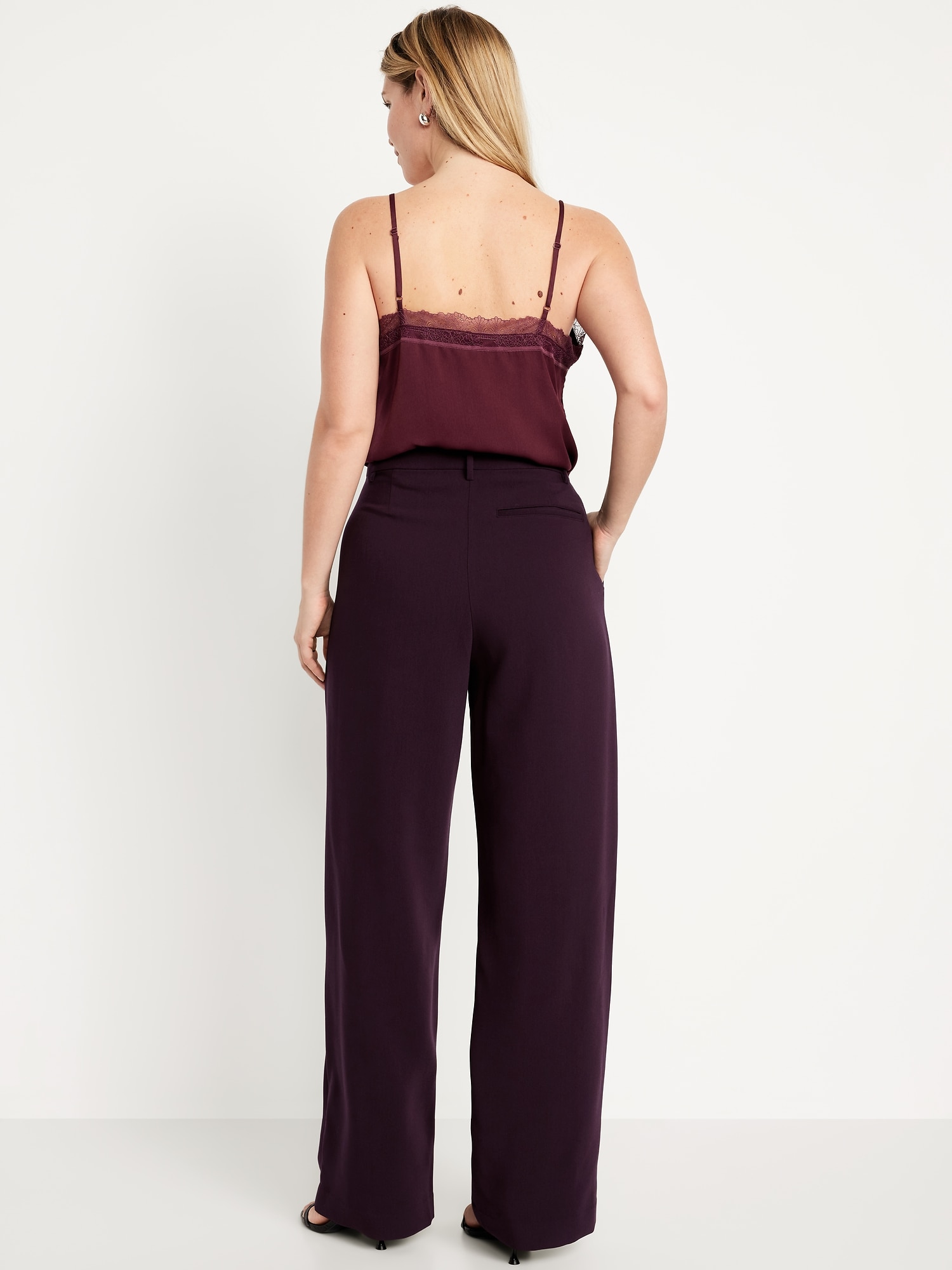 Extra High-Waisted Taylor Wide-Leg Trouser Pants: Tailored pleats. Loose fit. Don’t do 9-5 (or 5-9) without them.adjustable waistband, belt loops, hook-and-bar closure, zip fly, hip pockets, functional back welt pocket, wide leg, #791424