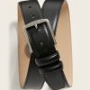 Faux-Leather Belt: Smooth, faux leather belt with metal buckle., Approximately 1″ wide., #852703
